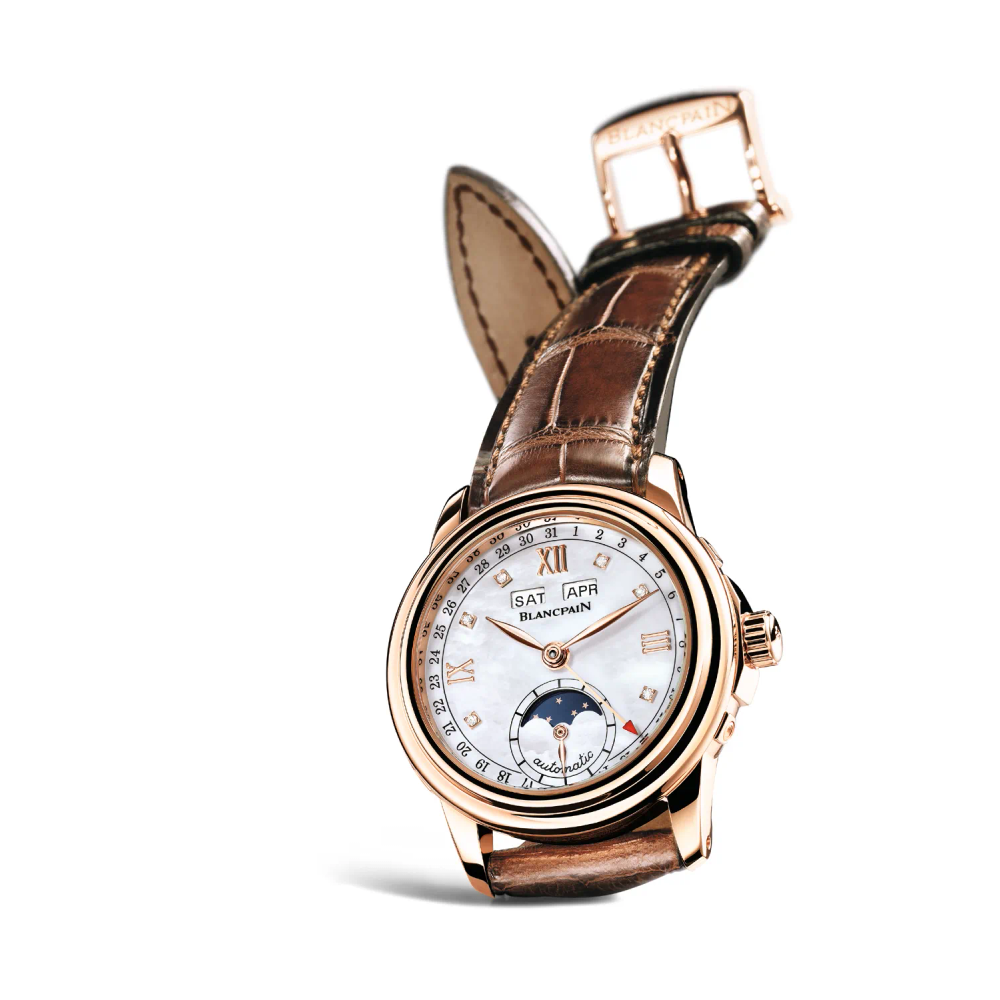 Ein vollständiger Kalender ist eine Komplikation bei der Uhr, die den Tag, das Datum und den Monat anzeigt. Blancpain ist bekannt für seine kompletten Kalenderuhren mit Mondphasenanzeige, die Funktionalität, Poesie und Ästhetik bieten.