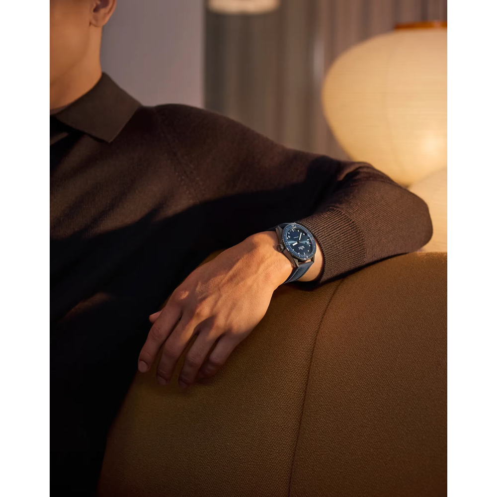 Zifferblattfarbe: Blaues Zifferblatt mit Sonnenschliff und feinem Farbverlauf