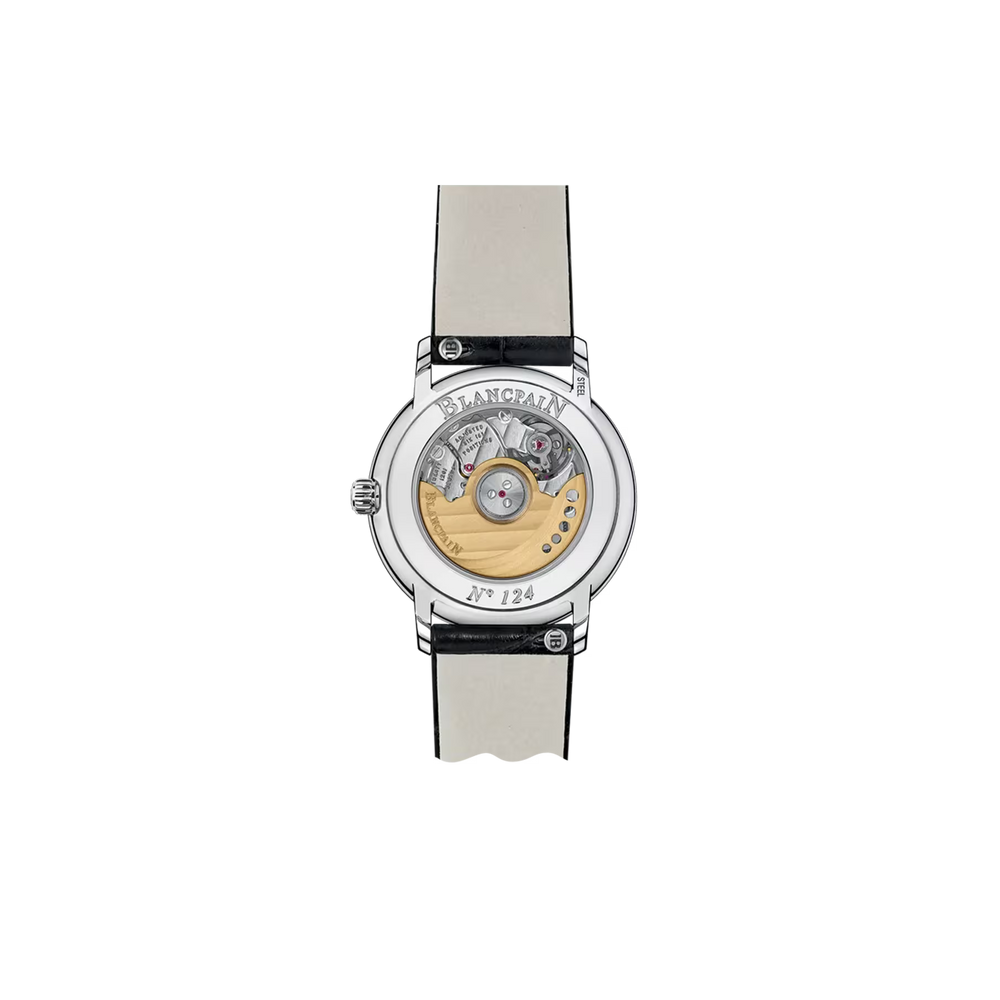 Ein gesichertes Uhrwerk ist eine uhrmacherische Innovation, die entwickelt wurde, um empfindliche Mechanismen zu schützen und dauerhafte Präzision zu gewährleisten. Durch die Vermeidung von versehentlichen Beschädigungen beim Einstellen der Uhr erhöht es die Zuverlässigkeit im Laufe der Zeit. Bei Blancpain sind gesicherte Uhrwerke ein Markenzeichen unserer Handwerkskunst.