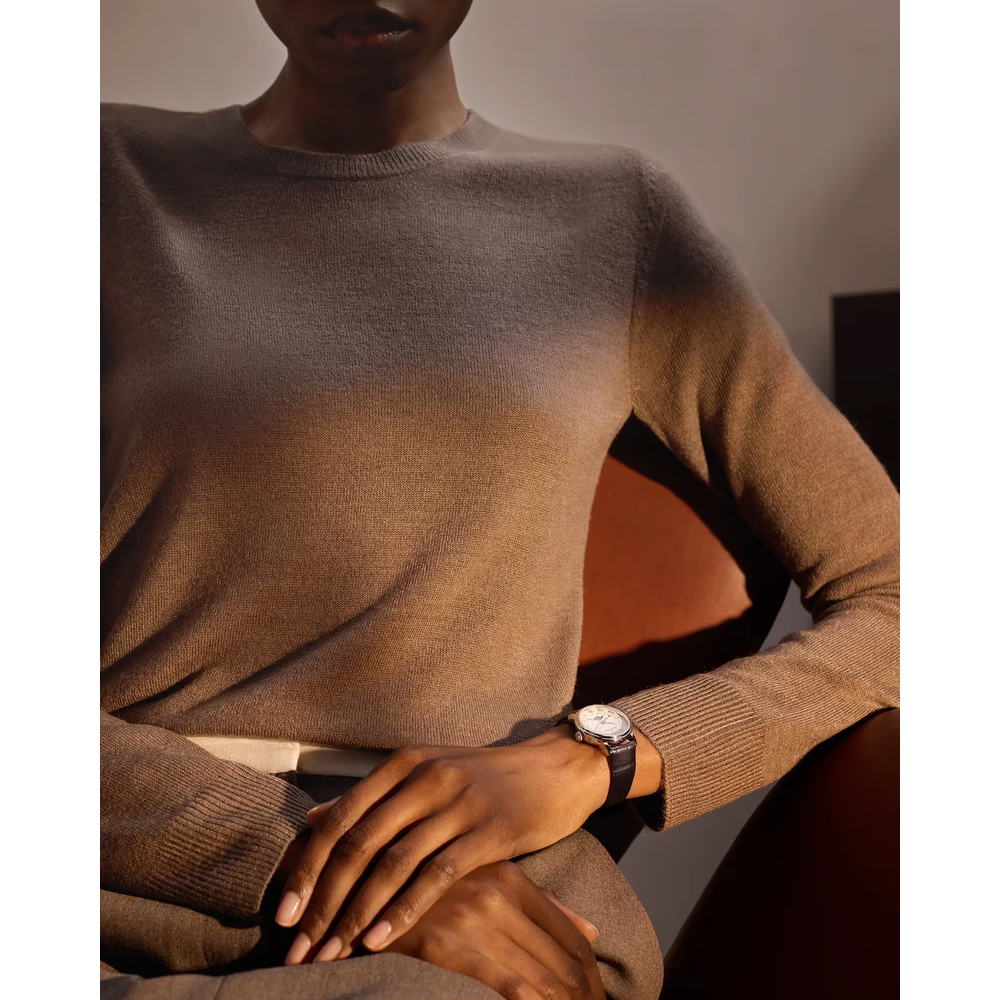 Bei einer Kalenderkomplikation wird ein spezieller Zeiger verwendet, der auf das Datum zeigt und um den Rand des Zifferblatts angeordnet ist. Diese periphere Skala, die in der Regel von 1 bis 31 nummeriert ist, bietet eine schnelle Ablesbarkeit. Sie verleiht traditionellen Zeitmessern einen klassischen, eleganten Touch.