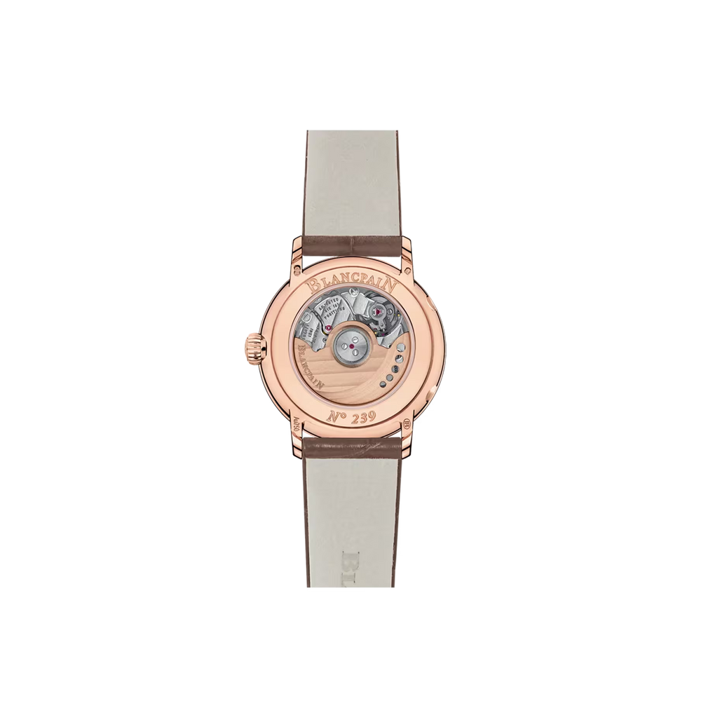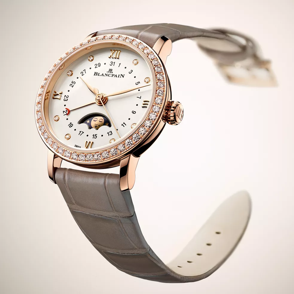 Eine Mondphasenkomplikation verfolgt den 29,5-tägigen Mondzyklus mit einer rotierenden Scheibe unter dem Zifferblatt, die von einem Rad mit 59 Zähnen angetrieben wird. Es verbindet Funktion mit Poesie. Blancpain ist dafür bekannt, dieses Merkmal zu verfeinern und Präzision, Tradition und Eleganz in jeder mondbeschienenen Präsentation zu vereinen.