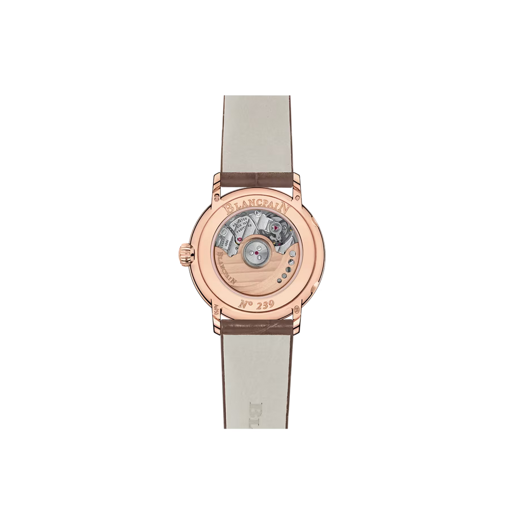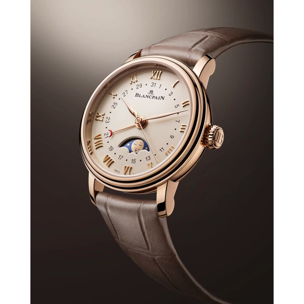 Eine Mondphasenkomplikation verfolgt den 29,5-tägigen Mondzyklus mit einer rotierenden Scheibe unter dem Zifferblatt, die von einem Rad mit 59 Zähnen angetrieben wird. Es verbindet Funktion mit Poesie. Blancpain ist dafür bekannt, dieses Merkmal zu verfeinern und Präzision, Tradition und Eleganz in jeder mondbeschienenen Präsentation zu vereinen.