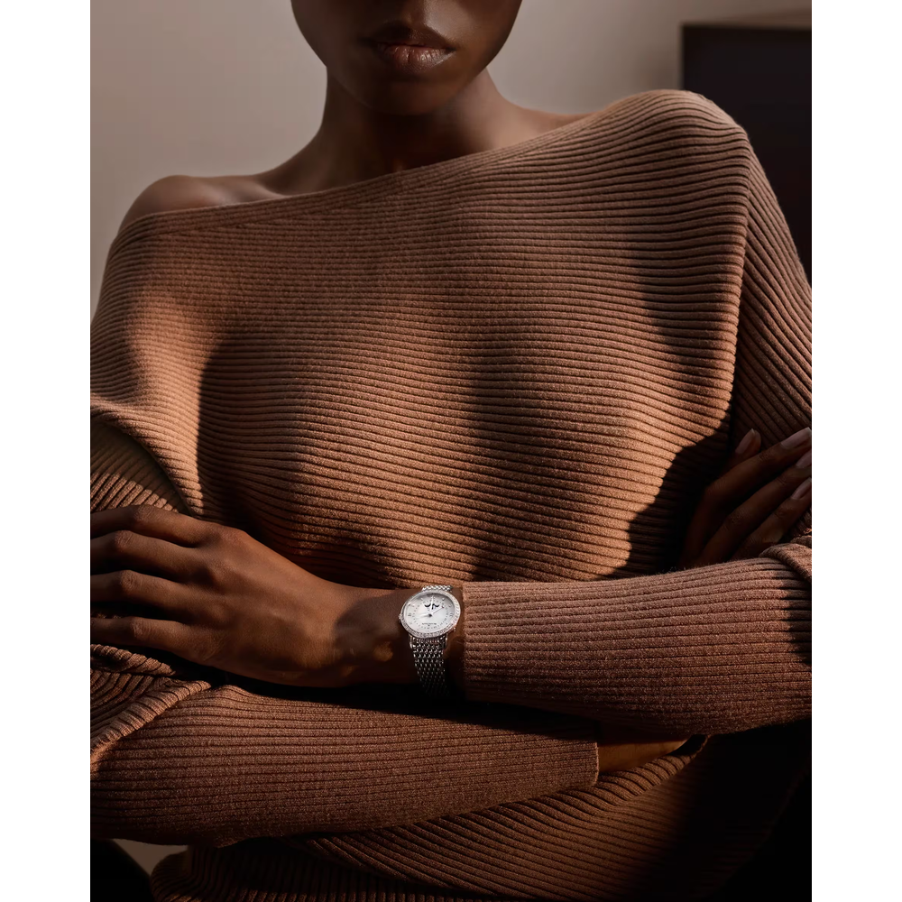 Zifferblattfarbe: Weiß mit Diamanten besetzt