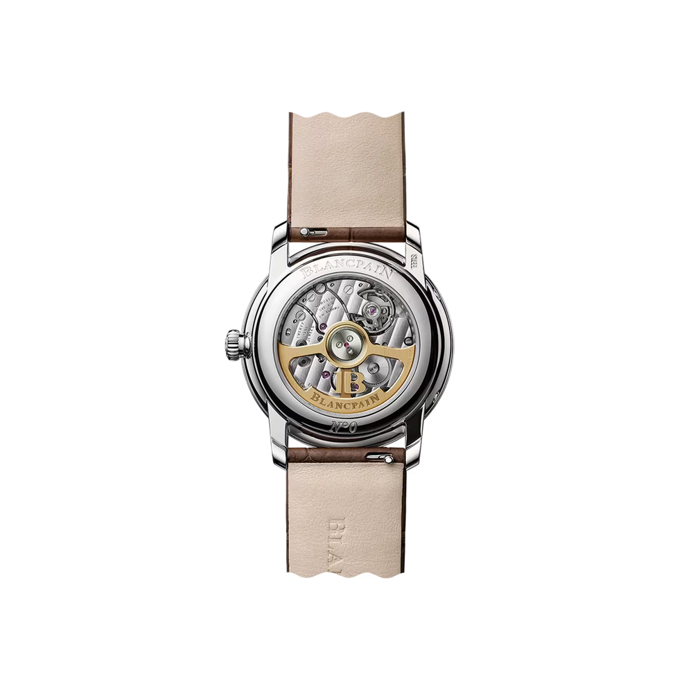 Eine Mondphasenkomplikation verfolgt den 29,5-tägigen Mondzyklus mit einer rotierenden Scheibe unter dem Zifferblatt, die von einem Rad mit 59 Zähnen angetrieben wird. Es verbindet Funktion mit Poesie. Blancpain ist dafür bekannt, dieses Merkmal zu verfeinern und Präzision, Tradition und Eleganz in jeder mondbeschienenen Präsentation zu vereinen.