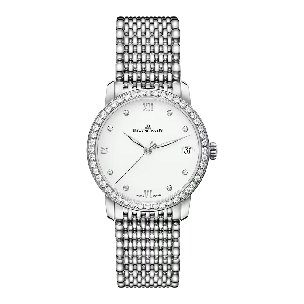 Zifferblattfarbe: Weiß mit Diamanten besetzt