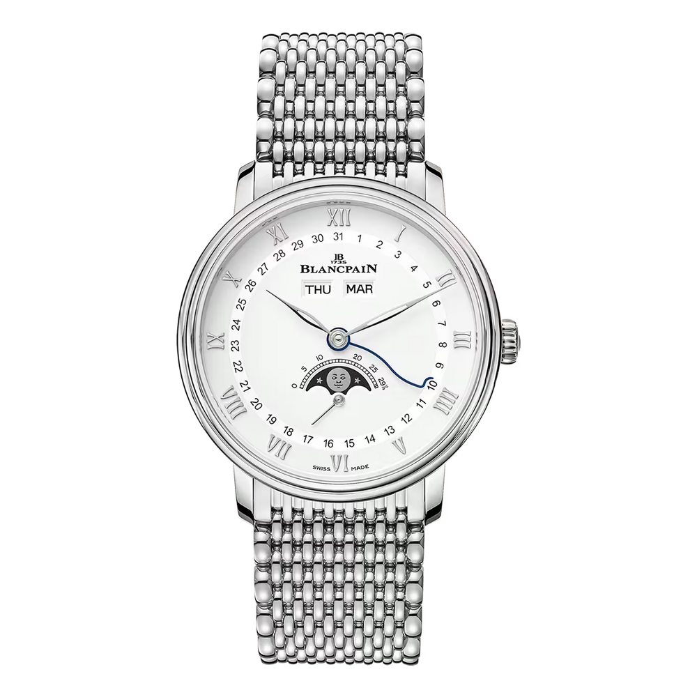Ein vollständiger Kalender ist eine Komplikation bei der Uhr, die den Tag, das Datum und den Monat anzeigt. Blancpain ist bekannt für seine kompletten Kalenderuhren mit Mondphasenanzeige, die Funktionalität, Poesie und Ästhetik bieten.