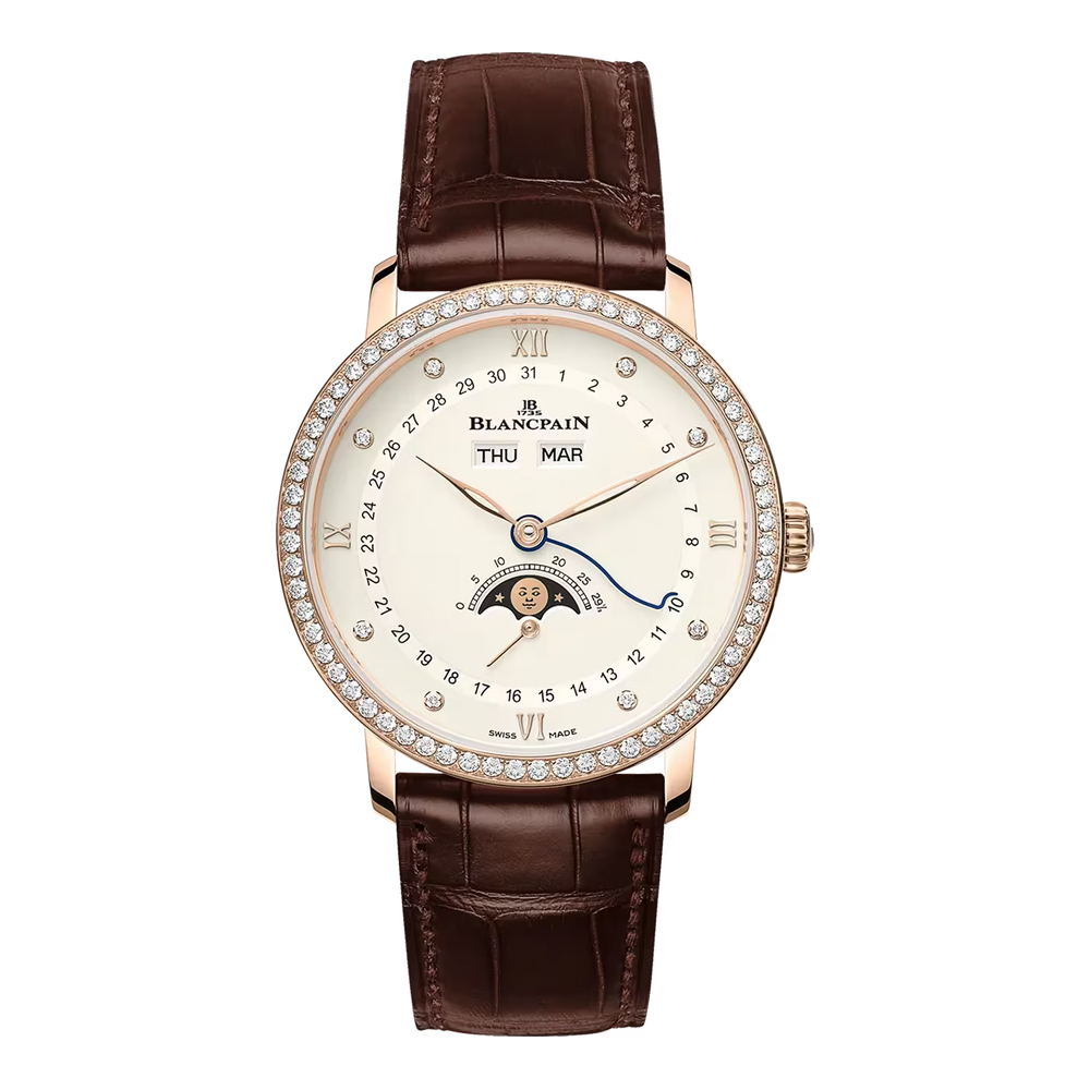 Ein vollständiger Kalender ist eine Komplikation bei der Uhr, die den Tag, das Datum und den Monat anzeigt. Blancpain ist bekannt für seine kompletten Kalenderuhren mit Mondphasenanzeige, die Funktionalität, Poesie und Ästhetik bieten.