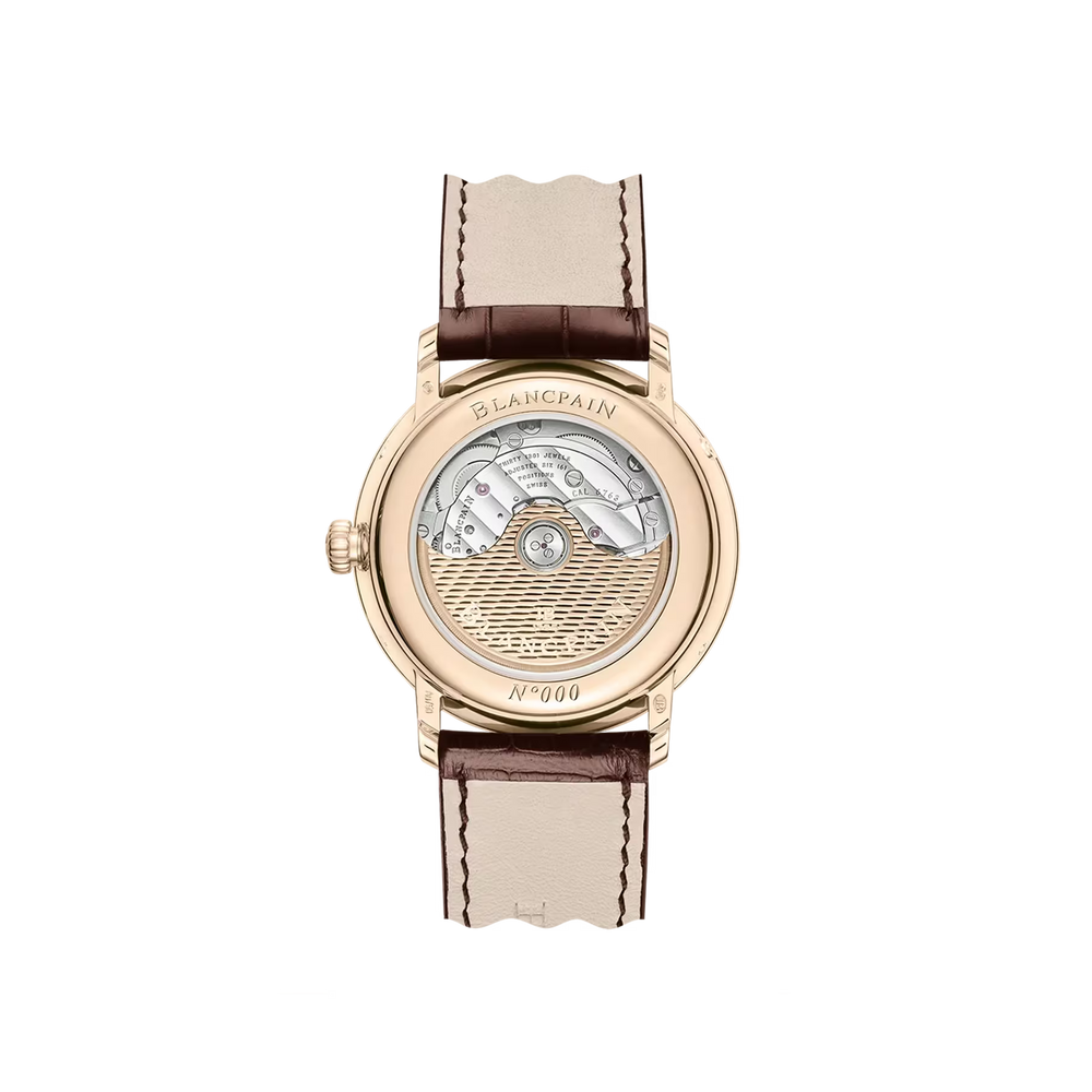 Eine Mondphasenkomplikation verfolgt den 29,5-tägigen Mondzyklus mit einer rotierenden Scheibe unter dem Zifferblatt, die von einem Rad mit 59 Zähnen angetrieben wird. Es verbindet Funktion mit Poesie. Blancpain ist dafür bekannt, dieses Merkmal zu verfeinern und Präzision, Tradition und Eleganz in jeder mondbeschienenen Präsentation zu vereinen.