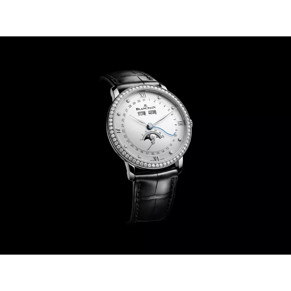 Eine Mondphasenkomplikation verfolgt den 29,5-tägigen Mondzyklus mit einer rotierenden Scheibe unter dem Zifferblatt, die von einem Rad mit 59 Zähnen angetrieben wird. Es verbindet Funktion mit Poesie. Blancpain ist dafür bekannt, dieses Merkmal zu verfeinern und Präzision, Tradition und Eleganz in jeder mondbeschienenen Präsentation zu vereinen.
