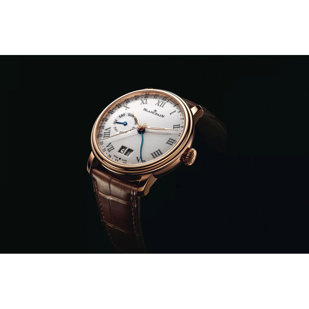 Ein gesichertes Uhrwerk ist eine uhrmacherische Innovation, die entwickelt wurde, um empfindliche Mechanismen zu schützen und dauerhafte Präzision zu gewährleisten. Durch die Vermeidung von versehentlichen Beschädigungen beim Einstellen der Uhr erhöht es die Zuverlässigkeit im Laufe der Zeit. Bei Blancpain sind gesicherte Uhrwerke ein Markenzeichen unserer Handwerkskunst.