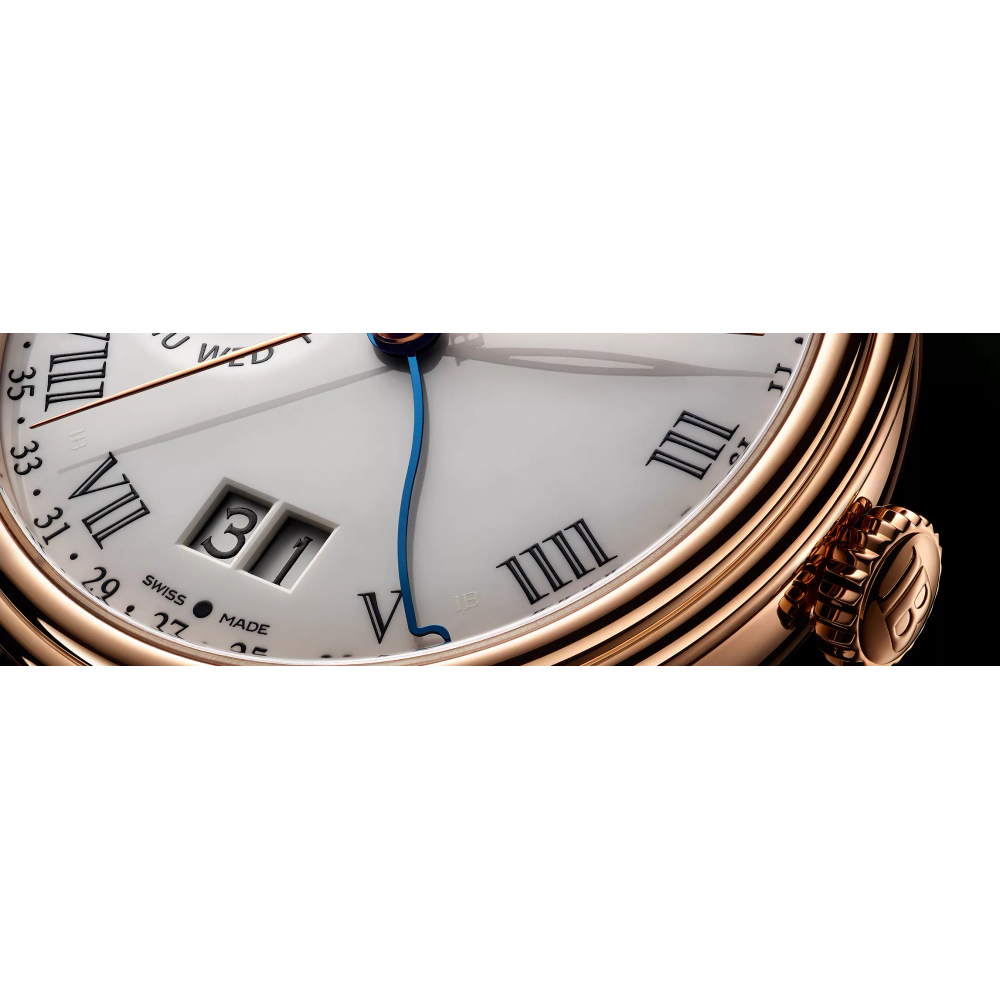 Eine große Datumskomplikation zeigt das Datum in einer größeren Blende an, um die Lesbarkeit zu verbessern. Es werden zwei separate Scheiben verwendet (eine für Zehner, eine für Einheiten), die eine kompliziertere Technik erfordern als herkömmliche Datumsanzeigen. Dieser raffinierte Mechanismus ist ein Markenzeichen der High-End-Uhrmacherkunst und verbindet Klarheit mit technischer Raffinesse.
