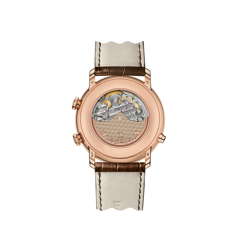 Ein gesichertes Uhrwerk ist eine uhrmacherische Innovation, die entwickelt wurde, um empfindliche Mechanismen zu schützen und dauerhafte Präzision zu gewährleisten. Durch die Vermeidung von versehentlichen Beschädigungen beim Einstellen der Uhr erhöht es die Zuverlässigkeit im Laufe der Zeit. Bei Blancpain sind gesicherte Uhrwerke ein Markenzeichen unserer Handwerkskunst.