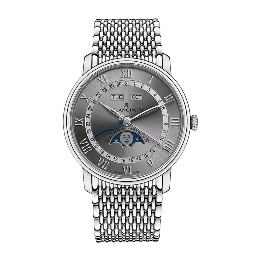 Ein vollständiger Kalender ist eine Komplikation bei der Uhr, die den Tag, das Datum und den Monat anzeigt. Blancpain ist bekannt für seine kompletten Kalenderuhren mit Mondphasenanzeige, die Funktionalität, Poesie und Ästhetik bieten.
