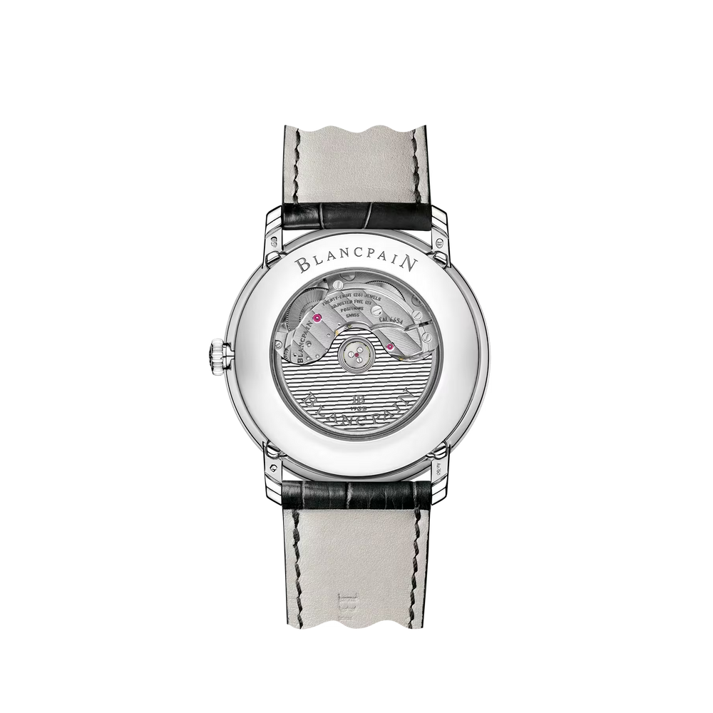 Eine Mondphasenkomplikation verfolgt den 29,5-tägigen Mondzyklus mit einer rotierenden Scheibe unter dem Zifferblatt, die von einem Rad mit 59 Zähnen angetrieben wird. Es verbindet Funktion mit Poesie. Blancpain ist dafür bekannt, dieses Merkmal zu verfeinern und Präzision, Tradition und Eleganz in jeder mondbeschienenen Präsentation zu vereinen.