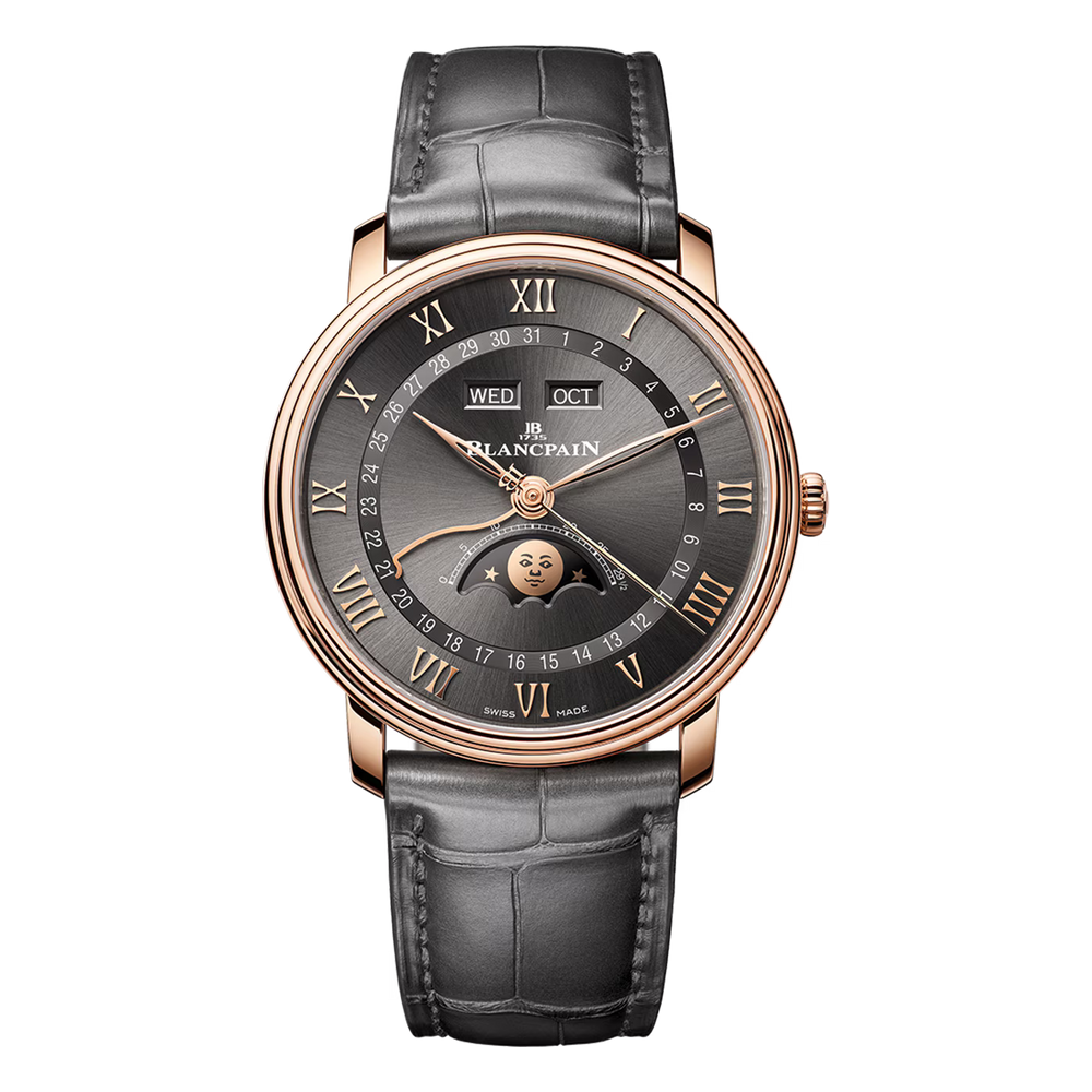 Eine Mondphasenkomplikation verfolgt den 29,5-tägigen Mondzyklus mit einer rotierenden Scheibe unter dem Zifferblatt, die von einem Rad mit 59 Zähnen angetrieben wird. Es verbindet Funktion mit Poesie. Blancpain ist dafür bekannt, dieses Merkmal zu verfeinern und Präzision, Tradition und Eleganz in jeder mondbeschienenen Präsentation zu vereinen.