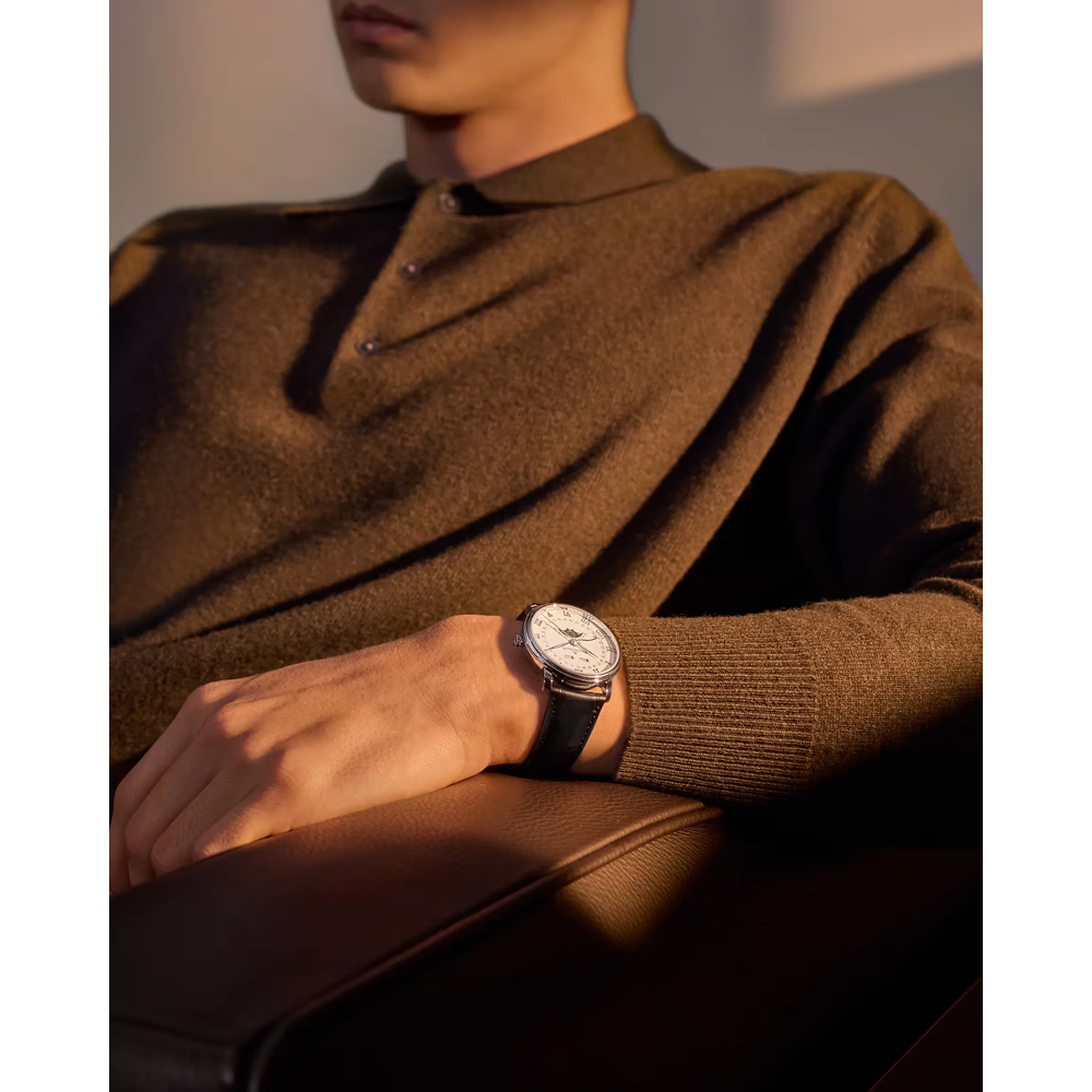 Eine Mondphasenkomplikation verfolgt den 29,5-tägigen Mondzyklus mit einer rotierenden Scheibe unter dem Zifferblatt, die von einem Rad mit 59 Zähnen angetrieben wird. Es verbindet Funktion mit Poesie. Blancpain ist dafür bekannt, dieses Merkmal zu verfeinern und Präzision, Tradition und Eleganz in jeder mondbeschienenen Präsentation zu vereinen.
