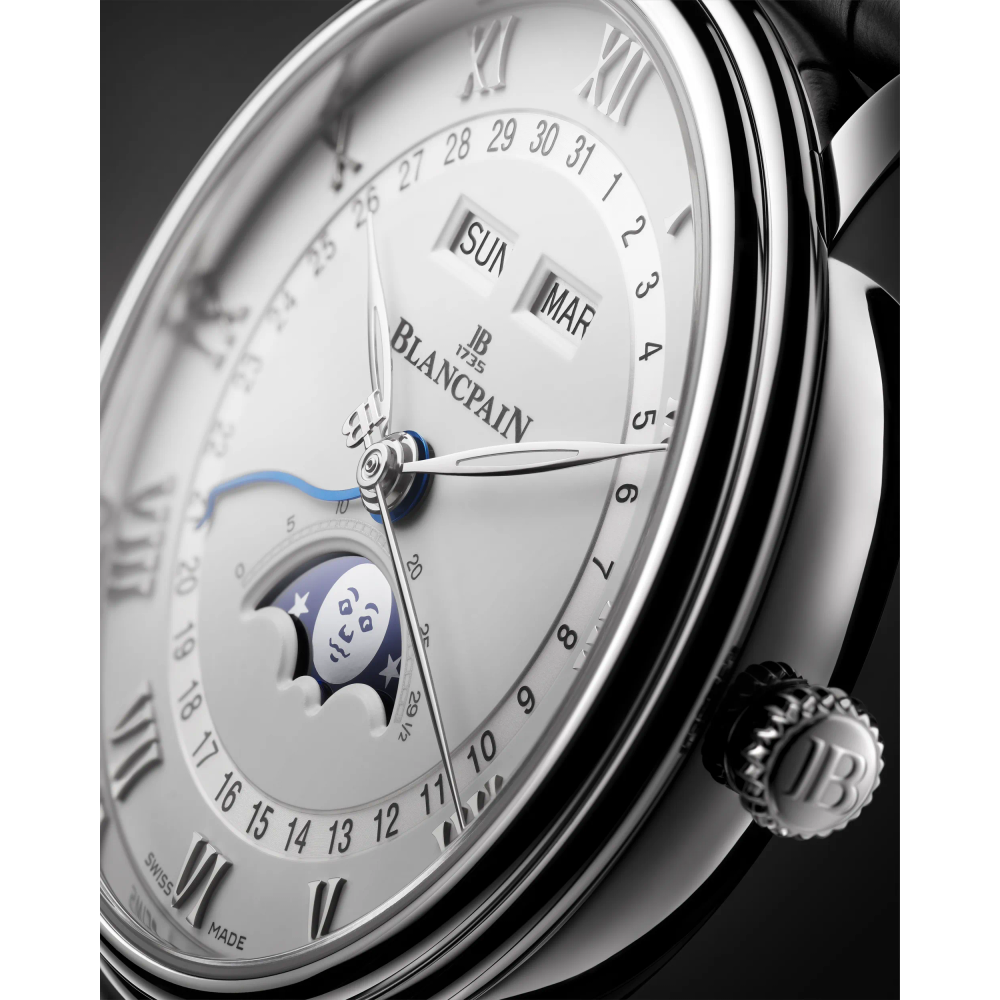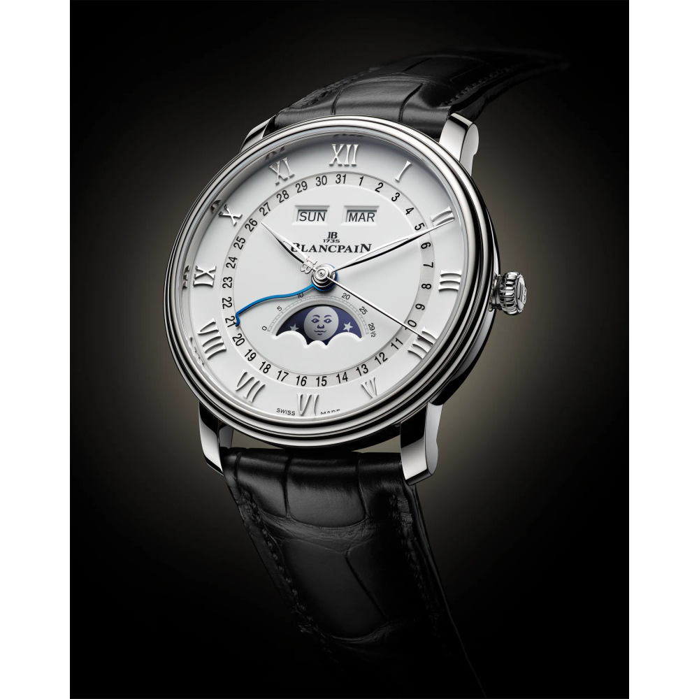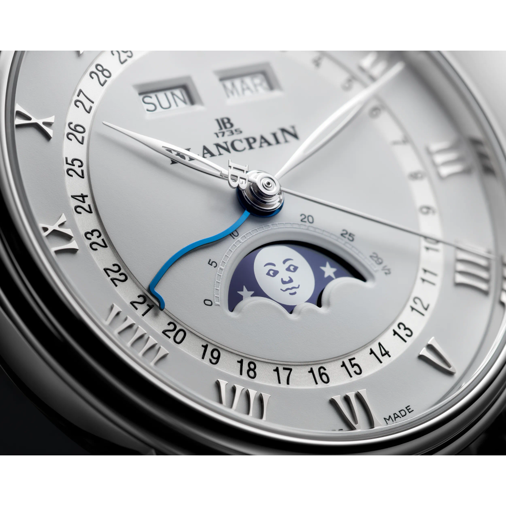 Ein vollständiger Kalender ist eine Komplikation bei der Uhr, die den Tag, das Datum und den Monat anzeigt. Blancpain ist bekannt für seine kompletten Kalenderuhren mit Mondphasenanzeige, die Funktionalität, Poesie und Ästhetik bieten.