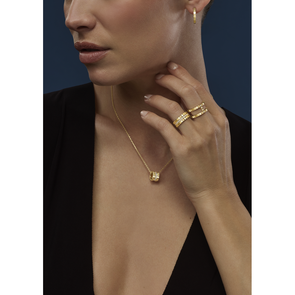 Die Ice Cube Kollektion wurde 1999 zum ersten Mal vorgestellt und interpretiert seither ihre moderne Ästhetik, die von zierlichen Eisblöcken inspiriert ist, immer wieder neu. Der Würfel symbolisiert Perfektion und ausdrucksvolle Geometrie und ist für alle Kreativen eine Quelle der Inspiration. Mit der Wahl dieser Würfelform spielt die Ice Cube Kollektion kühn mit ihrer außergewöhnlich klaren Ästhetik und den Myriaden von Lichtreflexen, die von den facettierten Würfelkanten widergespiegelt werden. Minimalistische Eleganz in ihrer schönsten Form.