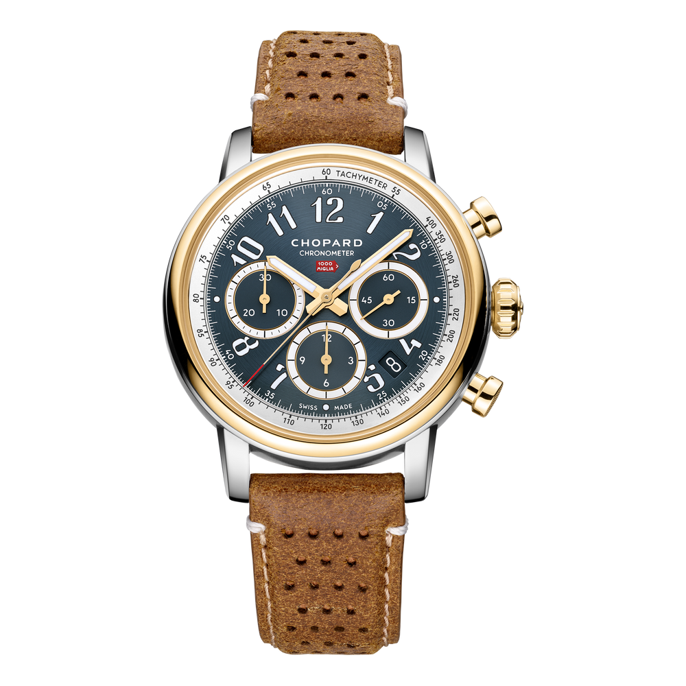 Seit 35 Jahren schlagen die Herzen von Chopard und der 1000 Miglia im Einklang. Als offizieller Zeitnehmer des weltweit berühmtesten Gleichmäßigkeitsrennens für Oldtimer hat Chopard den Mille Miglia Chronographen entwickelt. So vereinen sich die Liebe zu ästhetischer Technik und Spitzenleistung – entstanden aus der persönlichen Leidenschaft von Karl-Friedrich Scheufele für Autos und Motorsport.