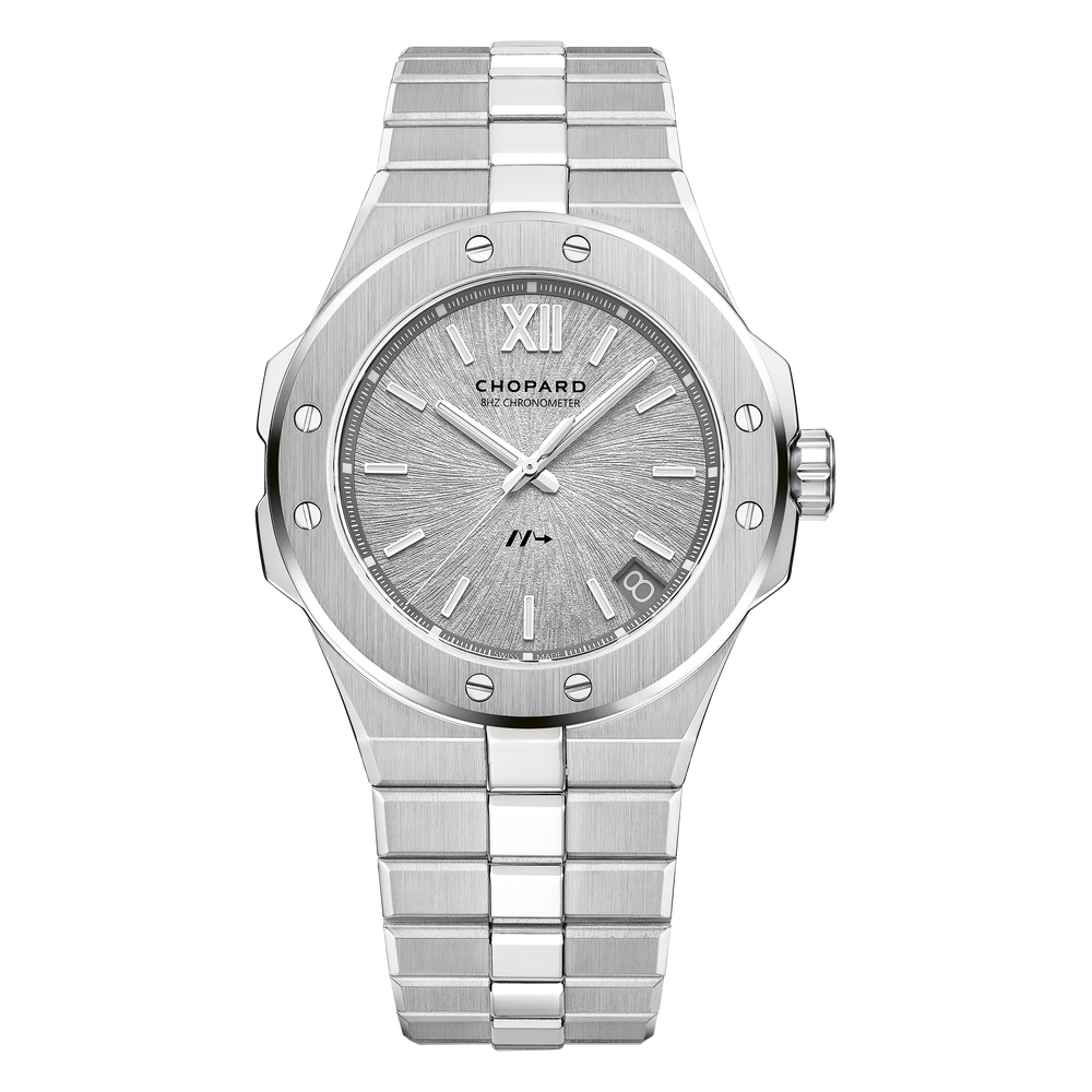 Scharfer Blick des Adlers und hochfrequente Uhrmacherei. Der Komfort von Titan und die Ausstrahlung eines eleganten Chronometers. Chopard vereint Präzision, Stil und Sportlichkeit im neuen Modell Alpine Eagle Cadence 8HF. Es wird in einer limitierten Auflage von nur 250 Exemplaren hergestellt. Dieser außergewöhnliche, 41 mm große Zeitmesser beherbergt eines der modernsten Uhrwerke der Ateliers Chopard. Das hochfrequente Uhrwerk Chopard 01.12-C, das es antreibt, erreicht seine Reisegeschwindigkeit bei 57 600 Halbschwingungen pro Stunde.