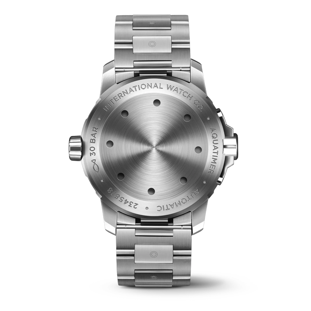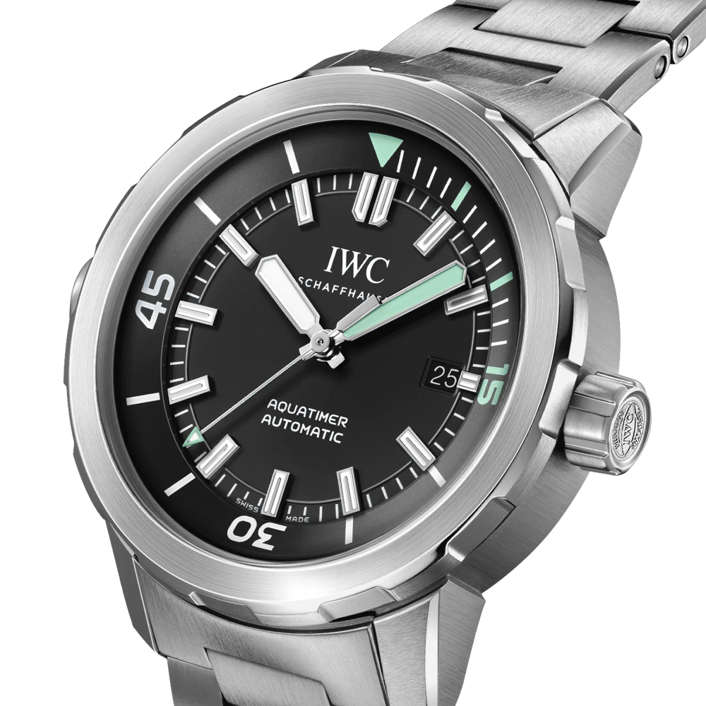 Die vom hauseigenen IWC-Kaliber 32111 angetriebene Aquatimer Automatic ist mit einem Edelstahl-Gehäuse, einem schwarzen Zifferblatt und einem Edelstahlarmband ausgestattet.