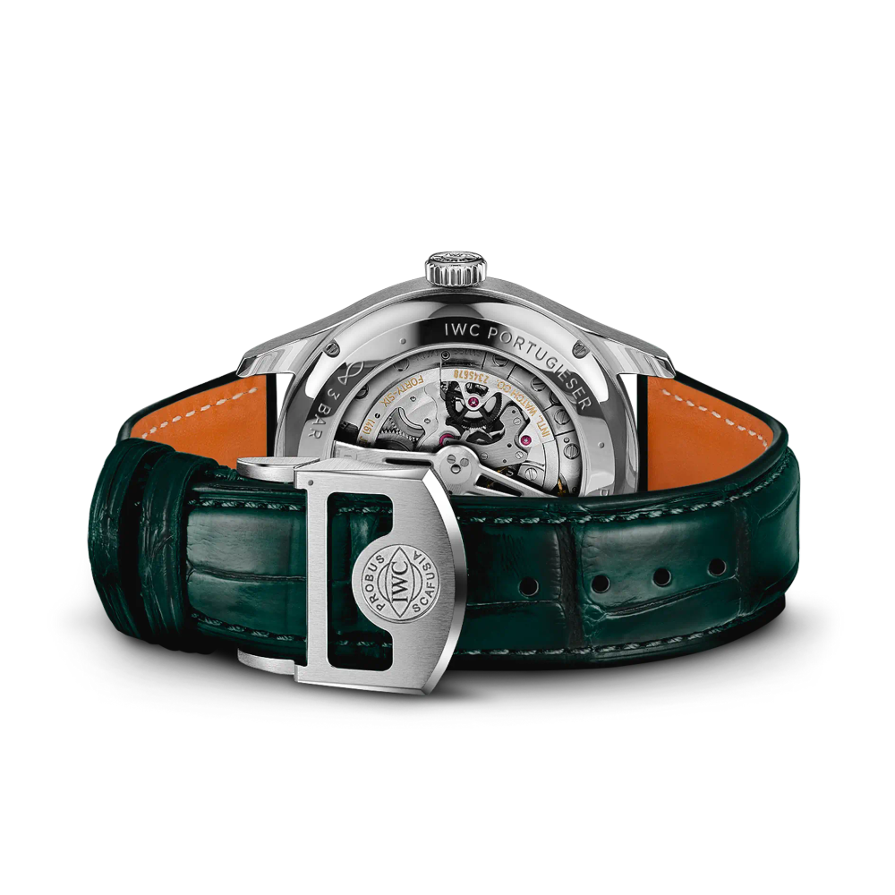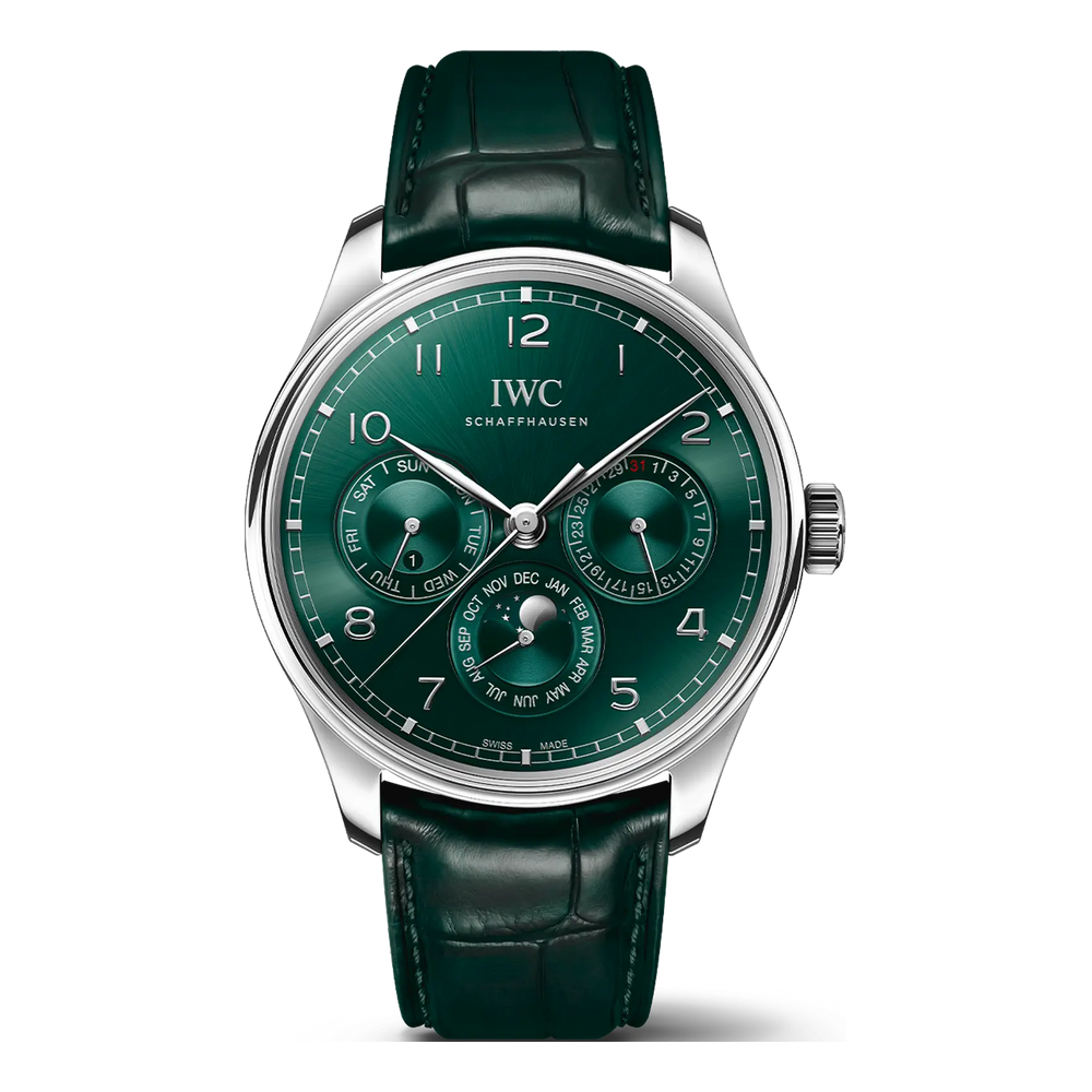 Diese Variante der Portugieser Perpetual Calendar 42 präsentiert die beliebte Komplikation auf einem grünen Zifferblatt.