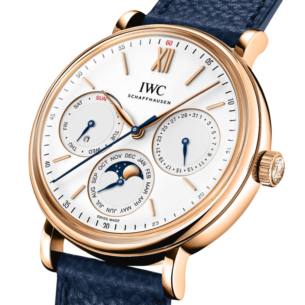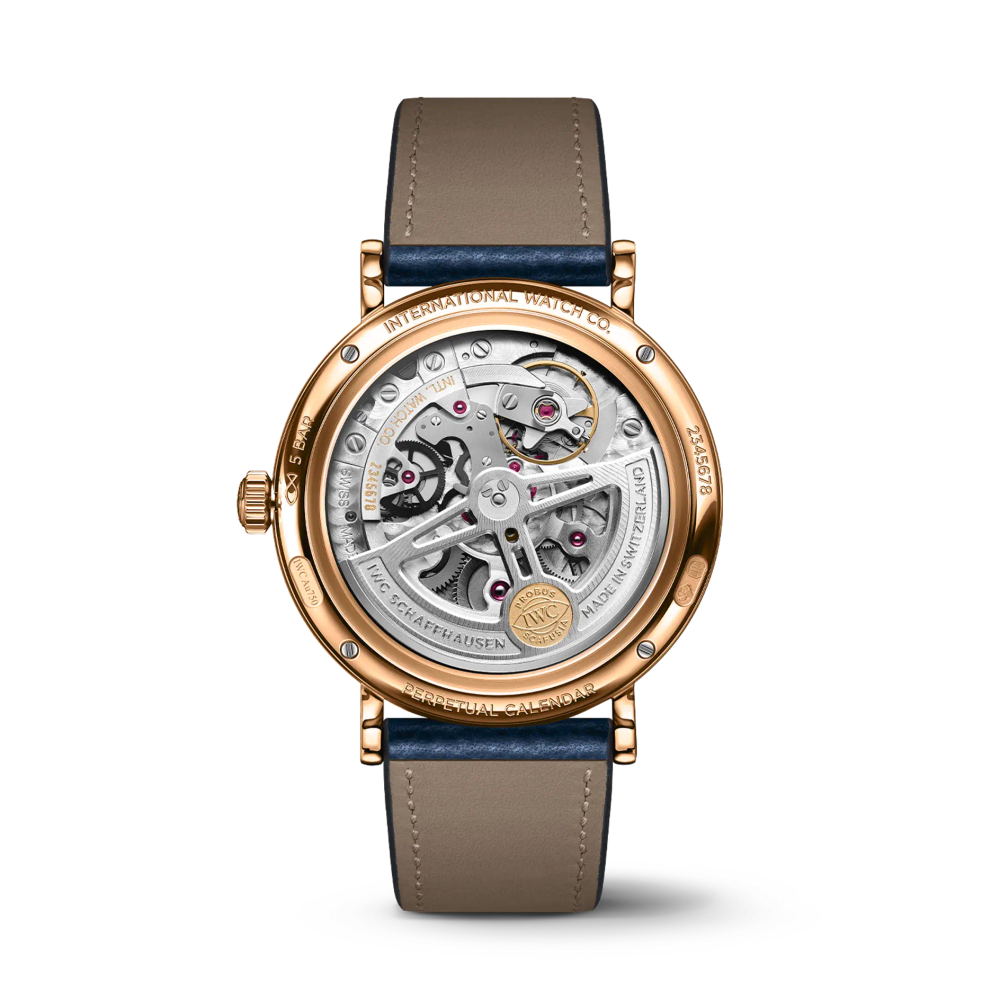 Die Portofino Perpetual Calendar ist mit dem legendären ewigen Kalender ausgestattet, der in den 1980er Jahren von Kurt Klaus entwickelt wurde.