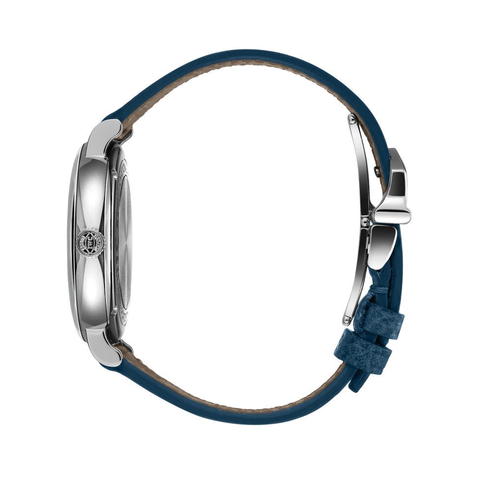 Armband: Blaues Kalbslederarmband mit Schnellwechselsystem