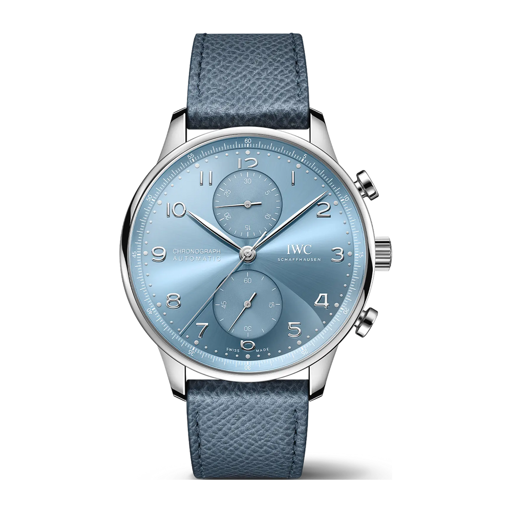 Seit 1998 bringt die Portugieser Chronograph eine sportlich-elegante Note in die Portugieser-Kollektion von IWC Schaffhausen. Die IWC-typische, vertikale Anordnung der Hilfszifferblätter zeigt die gestoppten Minuten direkt bei 12 Uhr an und platziert die kleine Sekunde bei 6 Uhr. Diese Anordnung verbessert die Ablesbarkeit und hat die Portugieser Chronograph zu einer Design-Ikone gemacht. Ein weiteres Merkmal ist der mit einer Viertelsekundenskala bedruckte Réhaut, der eine präzise Ablesung der Stoppzeit gewährleitet.