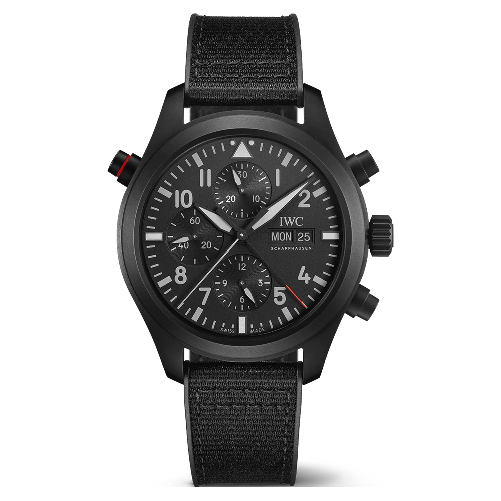 Die Pilot’s Watch Double Chronograph TOP GUN Ceratanium® ist die erste Fliegeruhr von IWC in einem komplett schwarzen «Jet Black»-Design.