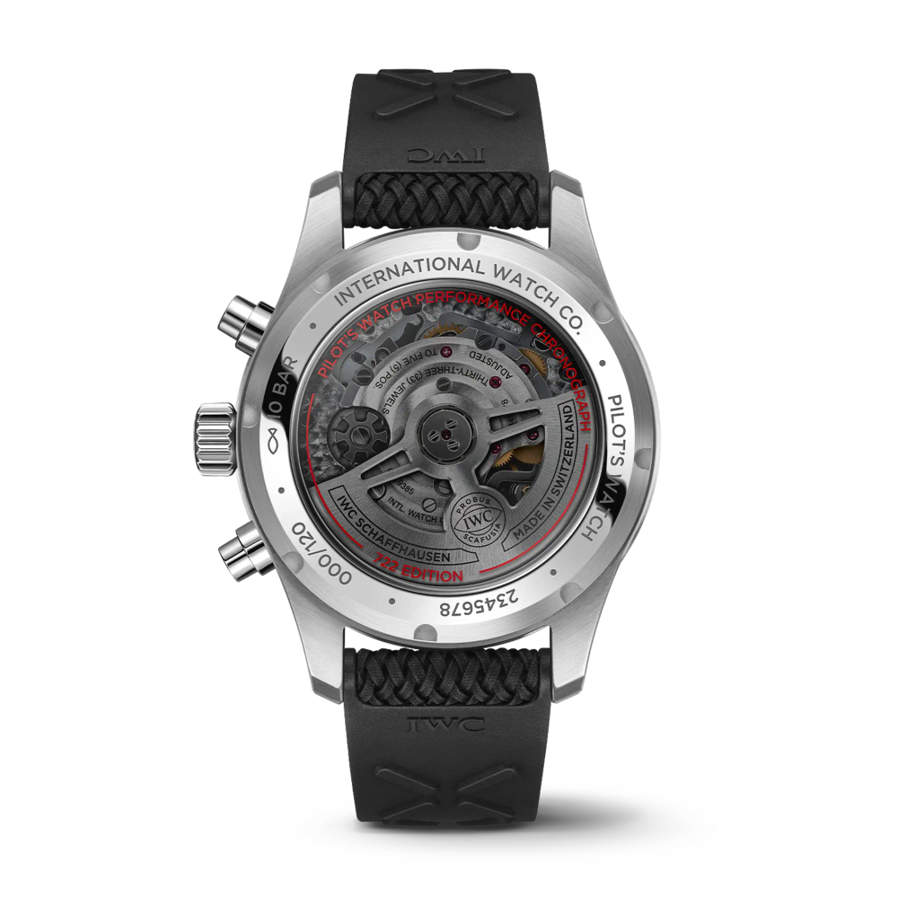 Die auf 120 Stück limitierte Pilot’s Watch Performance Chronograph 41 722 Edition verfügt über ein Zifferblatt, das aus einem originalen Teil der Magnesiumkarosserie des legendären Mercedes-Benz 300 SLR 722 gefertigt wurde.