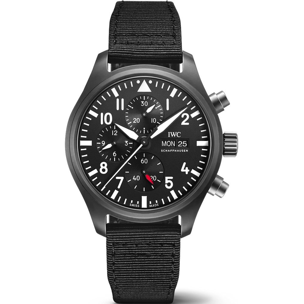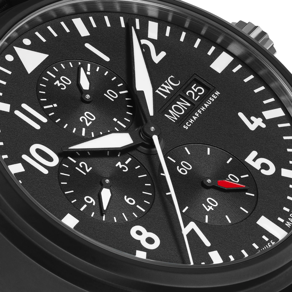 Zum ersten Mal setzt IWC für den populären TOP GUN Chronographen aus schwarzer Keramik ein Manufakturwerk aus der Kaliberfamilie 69000 ein.