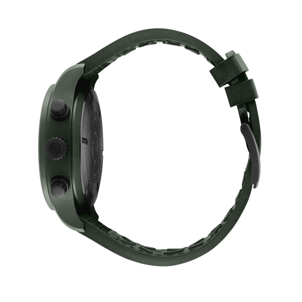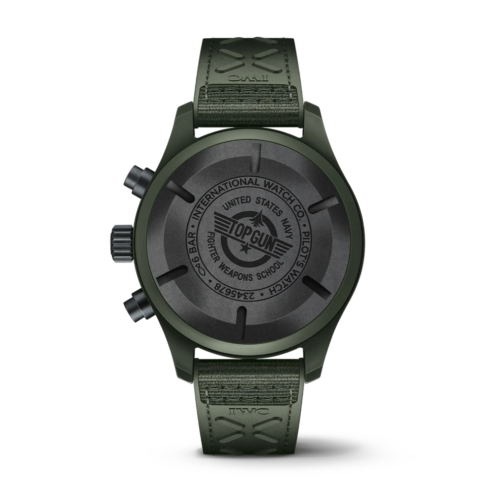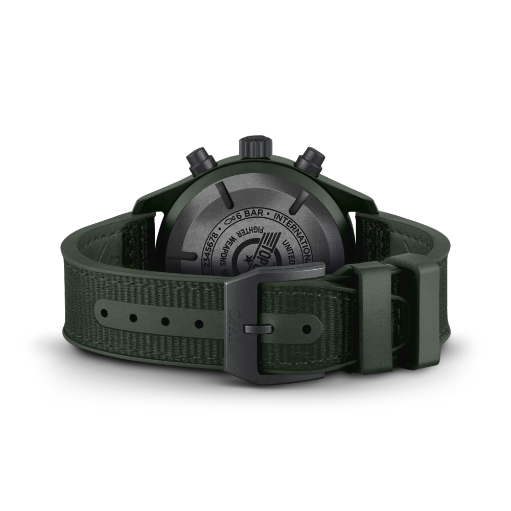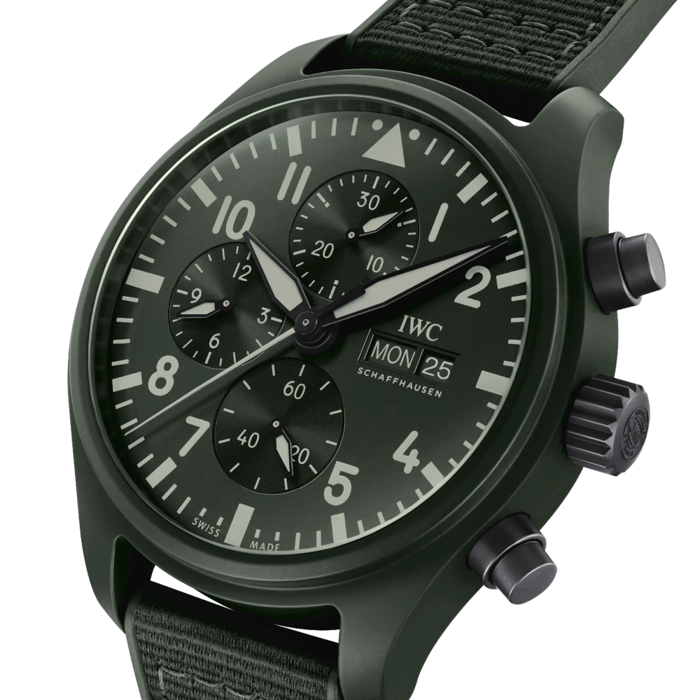 Die Pilot’s Watch Chronograph TOP GUN Edition «Woodland» ist die erste IWC-Uhr mit einem Gehäuse aus der neu entwickelten, dunkelgrünen Keramik.