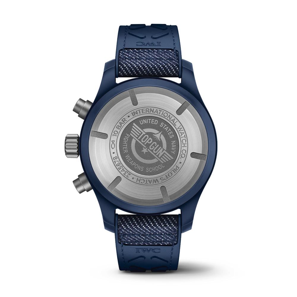 Die Pilot's Watch Chronograph 41 TOP GUN Oceana besticht durch ihr blaues Keramikgehäuse in einem angenehm zu tragenden Durchmesser von 41 Millimetern und ein monochromatisches Design.