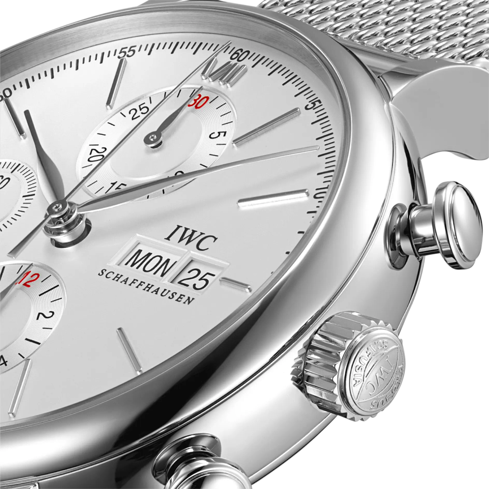 Das feingliedrige und anschmiegsame Milanaise-Armband aus Edelstahl betont den italienischen Charakter und die elegante Erscheinung dieses zeitlosen Design-Klassikers.