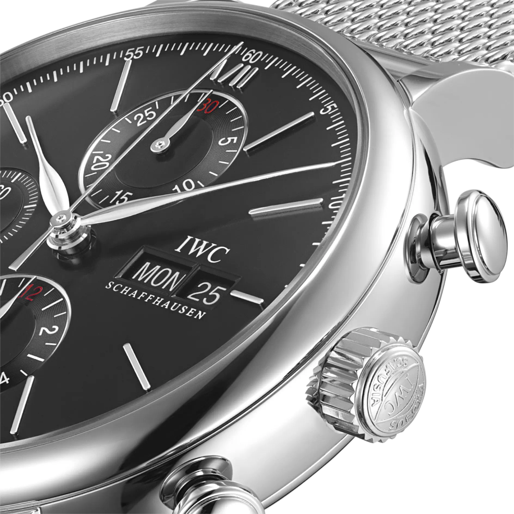 Das feingliedrige und anschmiegsame Milanaise-Armband aus Edelstahl betont den italienischen Charakter und die elegante Erscheinung dieses zeitlosen Design-Klassikers.