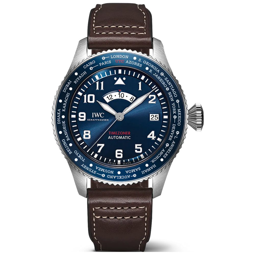 Zum ersten Mal präsentiert IWC die praktische Timezoner-Funktion im Design ihrer «Le Petit Prince»-Editionen mit einem markanten blauen Zifferblatt und einer Drehlünette aus blauer Keramik.
