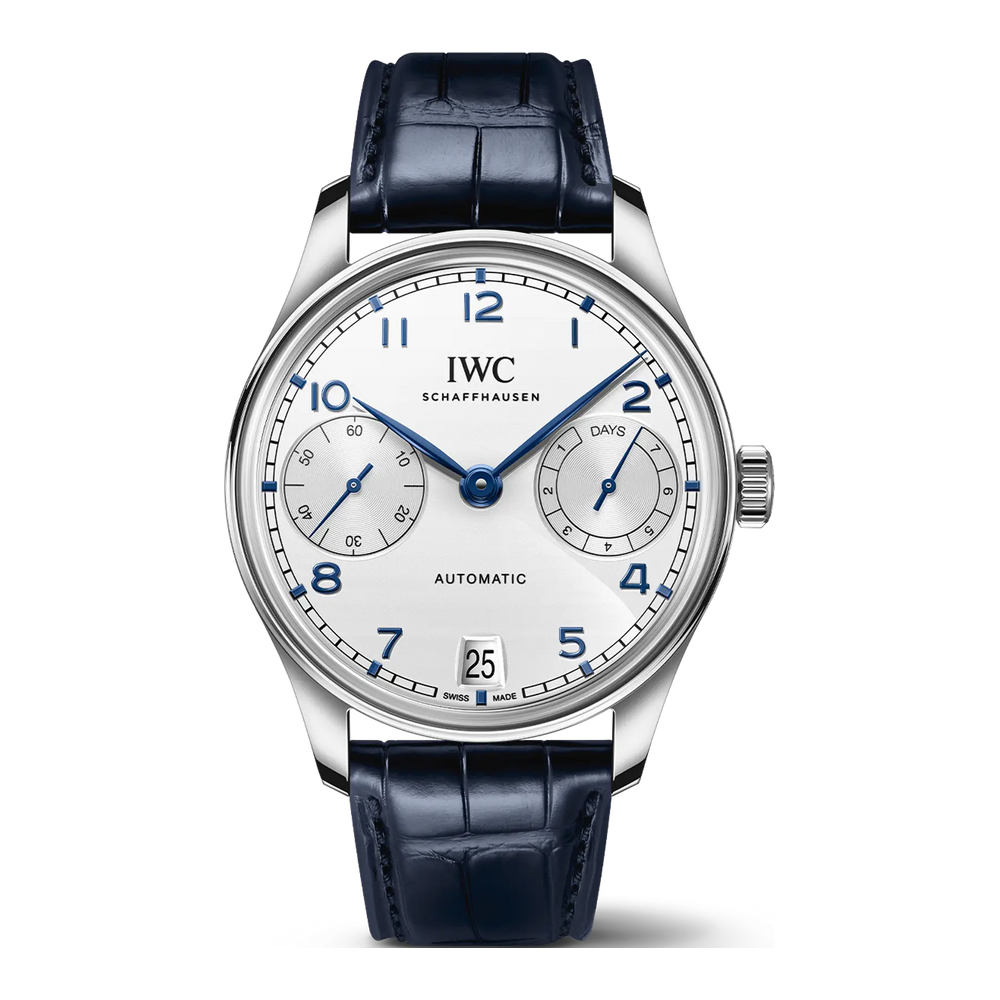 Die Ursprünge der Portugieser reichen in die späten 1930er Jahre zurück, als IWC Schaffhausen ein hochpräzises Taschenuhrwerk verwendete, um eine besonders grosse Armbanduhr mit Chronometer-Präzision zu schaffen. Die im Jahr 2000 eingeführte Portugieser Automatic 42 präsentiert ein offenes, ausgewogenes Zifferblatt mit einer Gangreserveanzeige um 3 Uhr und einer auf der gegenüberliegenden Seite um 9 Uhr positionierten Sekundenanzeige.