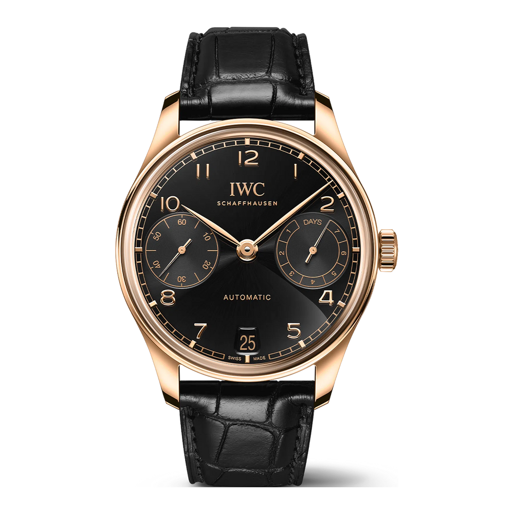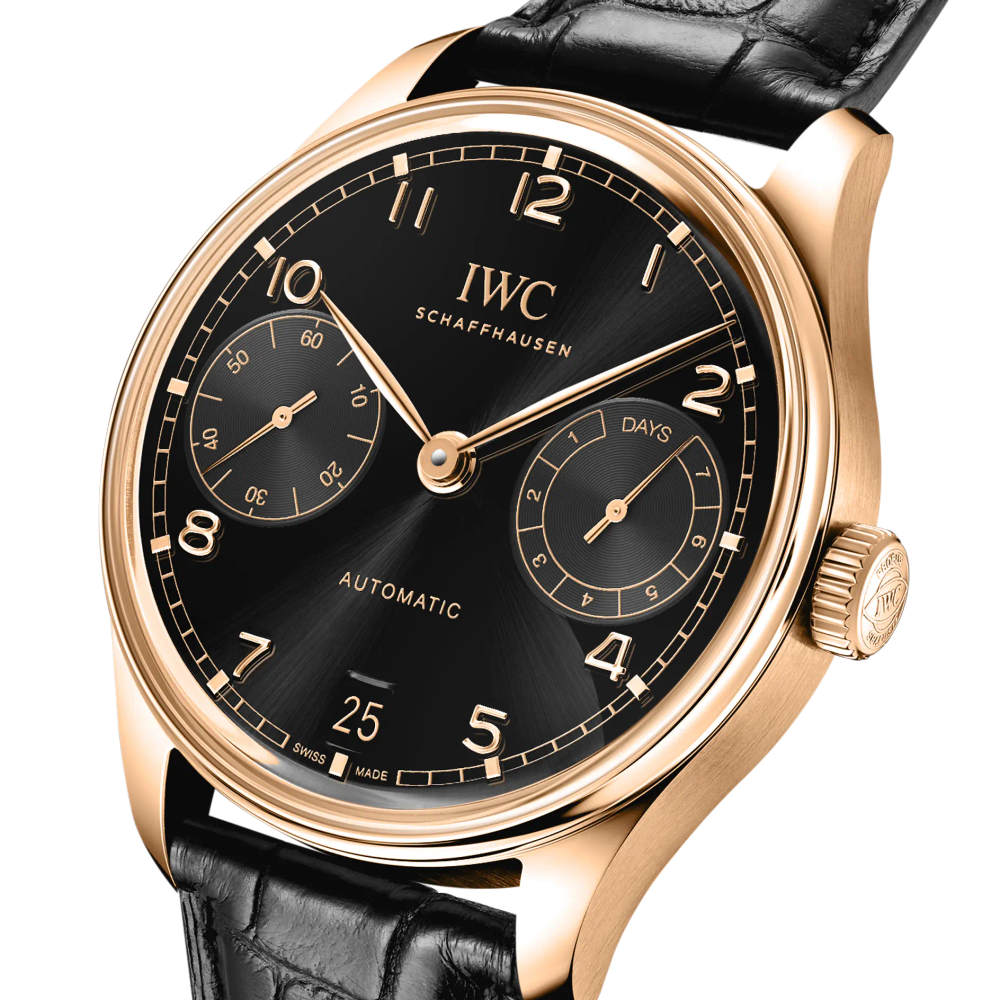 Die Ursprünge der Portugieser reichen in die späten 1930er Jahre zurück, als IWC Schaffhausen ein hochpräzises Taschenuhrwerk verwendete, um eine besonders grosse Armbanduhr mit Chronometer-Präzision zu schaffen. Die im Jahr 2000 eingeführte Portugieser Automatic 42 präsentiert ein offenes, ausgewogenes Zifferblatt mit einer Gangreserveanzeige um 3 Uhr und einer auf der gegenüberliegenden Seite um 9 Uhr positionierten Sekundenanzeige.