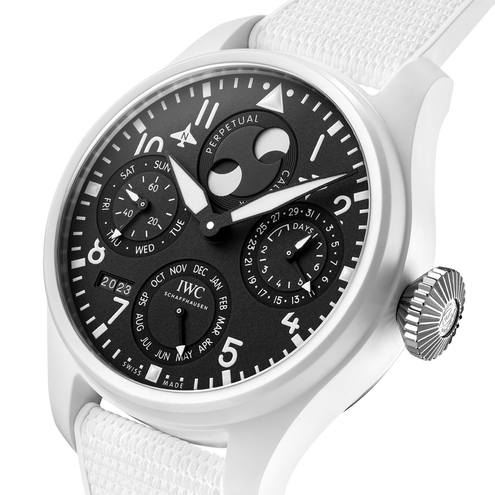 Ewiger Kalender mit Anzeige von Datum, Wochentag, Monat, vierstelliger Jahresanzeige und ewiger Mondphase für die nördliche und südliche Hemisphäre