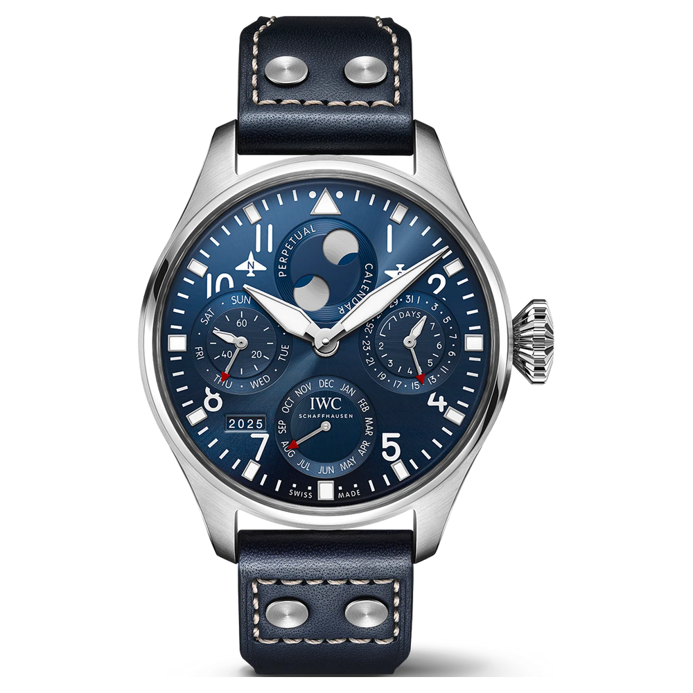 Die Big Pilot’s Watch Perpetual Calendar in Edelstahl mit blauem Zifferblatt führt die langjährige Tradition von Uhren mit ewigem Kalender in der Big Pilot’s Kollektion fort.