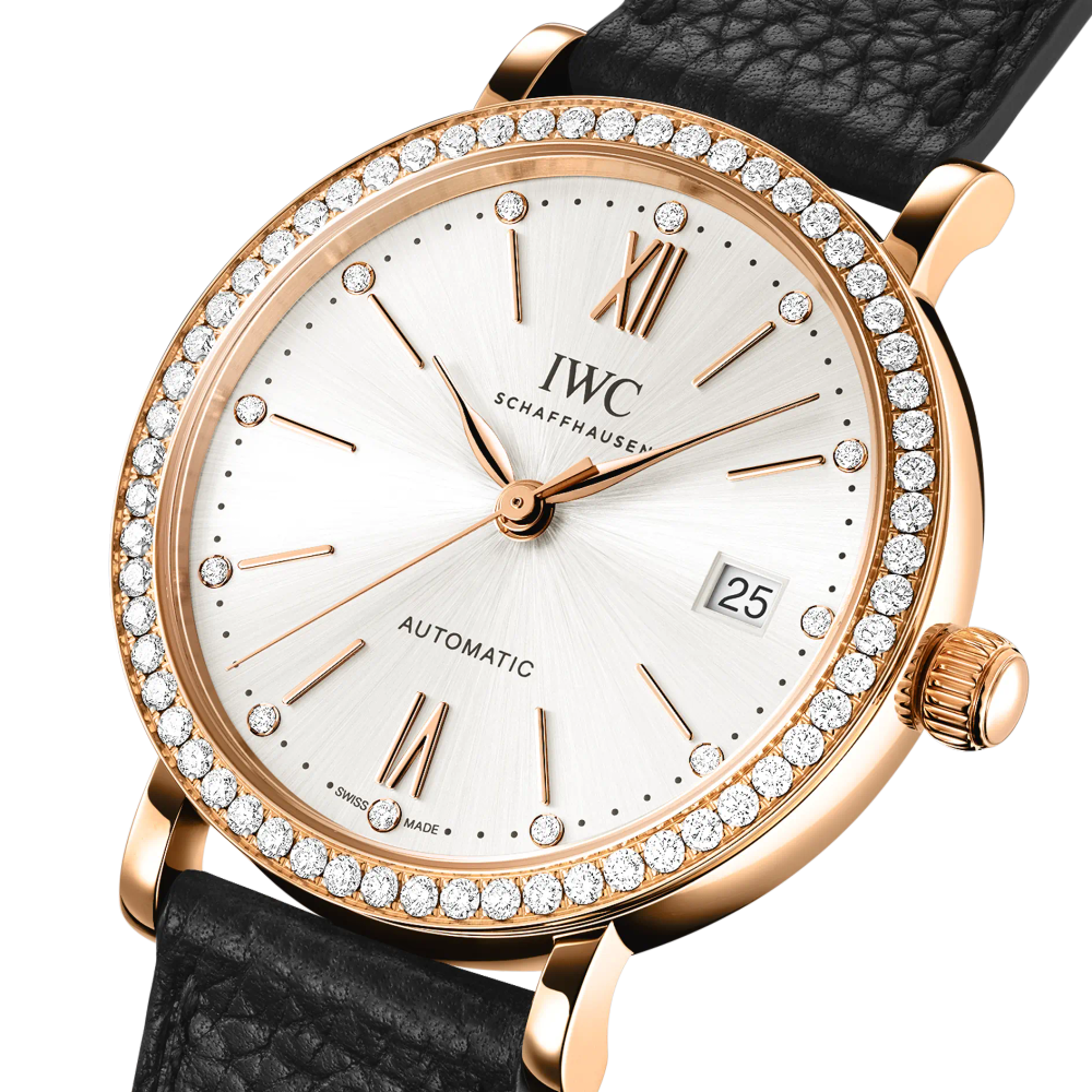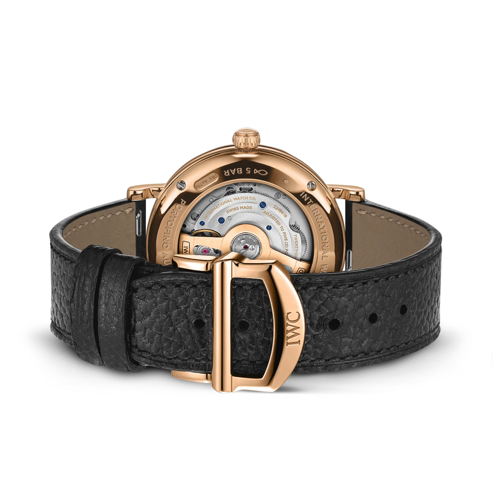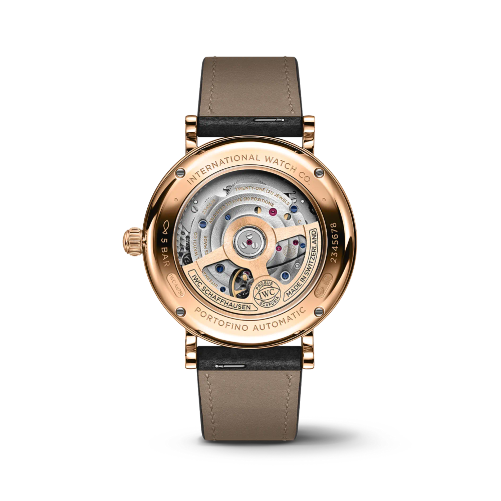 Die Portofino Automatic 37 ist mit dem IWC-Manufakturkaliber 32111 ausgestattet und verfügt über einen Sichtboden aus Saphirglas.