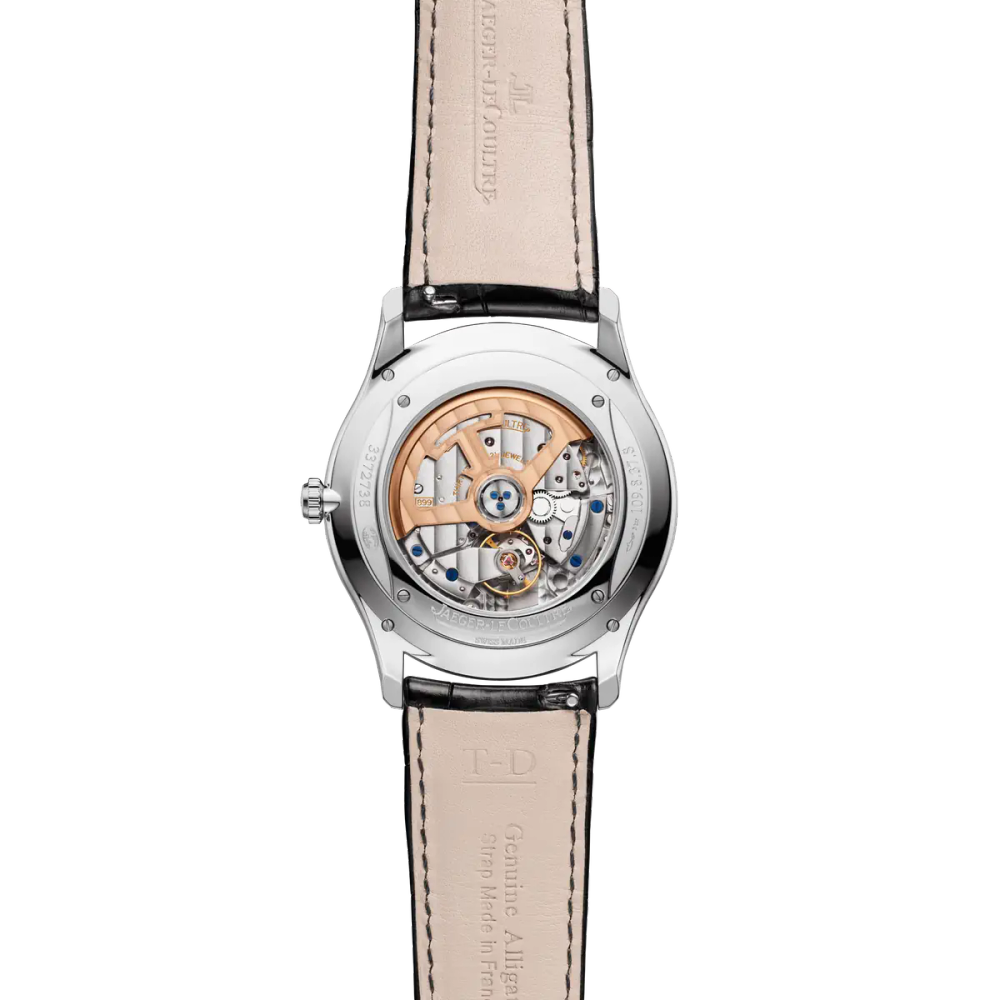 Die Master Ultra Thin Date aus Edelstahl mit ihrem zeitlosen und doch modernen Stil zeichnet sich durch subtile Änderungen aus, die im beständigen Streben der Kunsthandwerker von Jaeger-LeCoultre nach Perfektion begründet sind. Die Details, die zuerst ins Auge fallen, befinden sich auf dem Zifferblatt. Vor dem Hintergrund in Silber mit Sonnenschliff finden sich jetzt verlängerte und feinere Indizes. Das Datum, das diesem Zeitmesser seinen Namen verleiht, wird in einem charakteristischen, neuen Fenster bei 6 Uhr angezeigt. Ein vorzüglicher Klassiker für Kenner raffinierter und dezenter Zeitmesser.