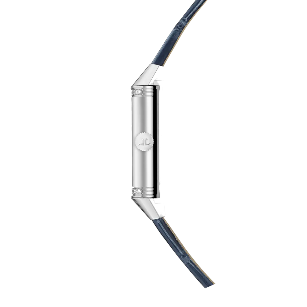 Die Reverso One aus Edelstahl mit ihren langgezogenen Linien und ihrem Diamantbesatz offenbart eine zeitlose Weiblichkeit, die insbesondere anmutigen Handgelenken schmeichelt. Wie ein unbeschriebenes Blatt bietet die Rückseite Raum für eine verborgene Gravur.