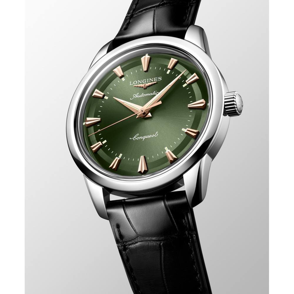 Die Conquest Kollektion ist eine Beschwörung des Wagemuts und des kreativen Geistes. Sie war die erste LONGINES Uhrenlinie, deren Name 1954 vom Eidgenössischen Institut für Geistiges Eigentum geschützt wurde. Als Hommage an die ersten Conquest Modelle, die vor über 70 Jahren auf den Markt kamen, wird die Conquest Heritage Linie alle Liebhaber von Vintage-Design ansprechen. Die Conquest Heritage Uhren vereinen nahtlos den klassischen Stil der 1950er Jahre mit moderner uhrmacherischer Technologie.