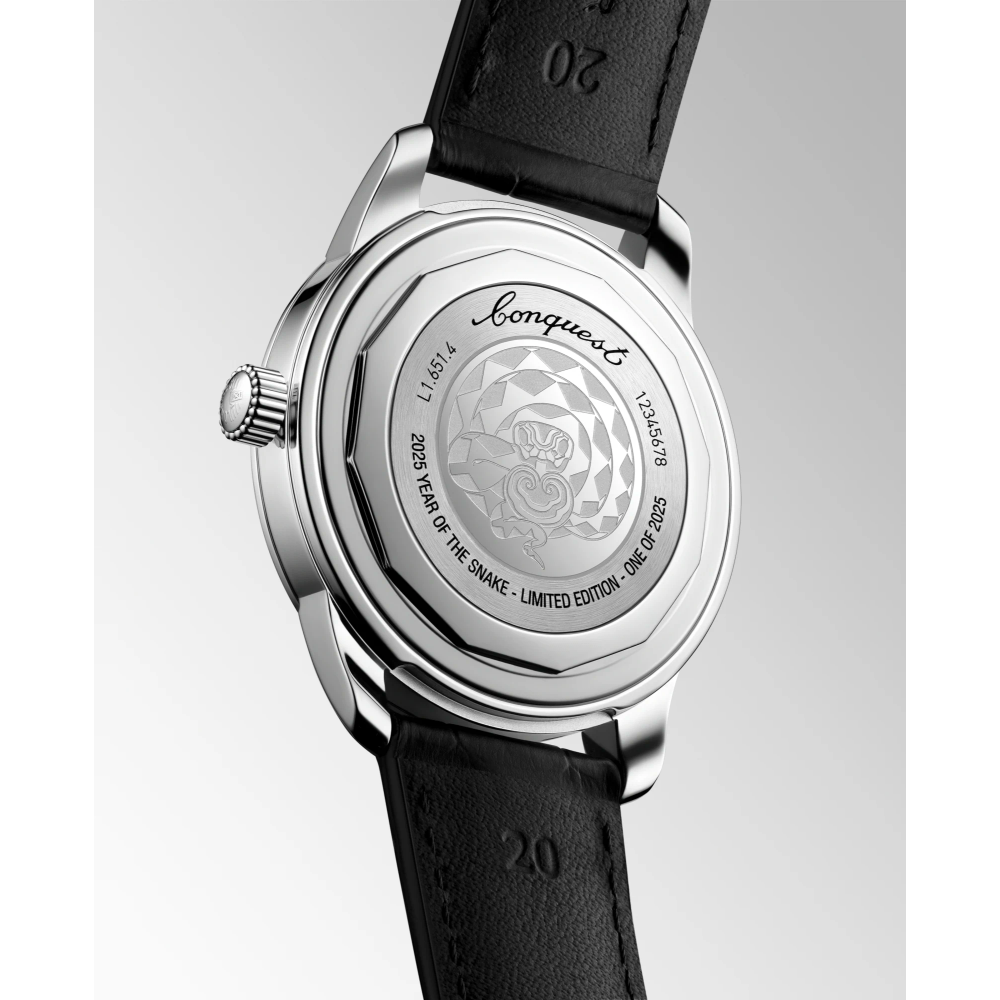 Anlässlich des Jahres der Schlange im Jahr 2025 hat LONGINES eine besondere Edition seines CONQUEST HERITAGE Modells lanciert. Das besondere Design der Uhr, das aufwendig in den Gehäuseboden graviert wurde und eine mystische Schlange zeigt, die einen Lingzhi-Pilz im Maul hält, wurde von dem berühmten chinesischen Künstler Wu Jian'an gestaltet. Die auf 2025 Exemplare limitierte CONQUEST HERITAGE YEAR OF THE SNAKE verfügt über ein 40-mm-Edelstahlgehäuse mit einem abgewinkelten, verschraubten Gehäuseboden, in den das einzigartige Schlangen-Emblem, ein Symbol des Glücks, eingraviert ist. Das leuchtend rote, gewölbte Zifferblatt mit Sonnenschliff und Farbverlauf ist mit vergoldeten Zeigern und Indizes verziert und bietet einen faszinierenden Anblick, der die Momente der Feierlichkeiten und des Wiedersehens zum Mondneujahr perfekt ergänzt. Angetrieben wird die Uhr von dem exklusiven LONGINES Kaliber L888.5, das mit einer Unruhspirale aus Silizium und innovativen Komponenten ausgestattet ist, die eine zehnmal höhere Magnetresistenz als die ISO-Norm 764 gewährleisten. Diese Uhr in limitierter Auflage mit schwarzem Lederarmband verleiht dem Jahr der Schlange einen Hauch von Raffinesse und Eleganz.