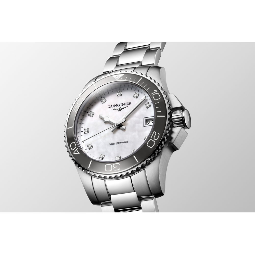 Die von der Welt des Wassersports inspirierte HydroConquest Kollektion besticht durch ihr gewagtes Design. Wasserdicht bis 30 bar (300 m), mit einseitig drehbarer Lünette und verschraubter Krone und Gehäuseboden, garantiert sie jederzeit außergewöhnliche Zuverlässigkeit.