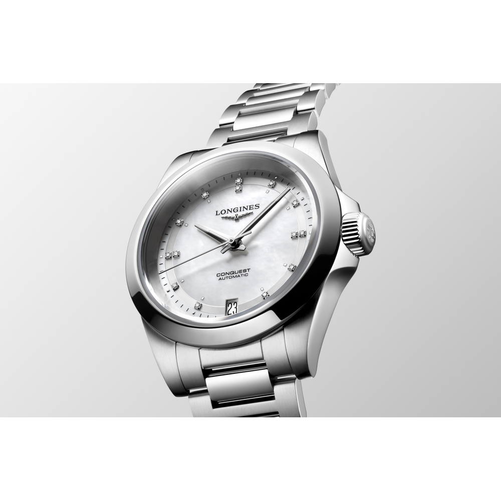Die Conquest, die ultimative Uhr für jeden Tag, war auch die erste LONGINES Kollektion, deren Name 1954 durch das Eidgenössische Institut für Geistiges Eigentum geschützt wurde. Seitdem hat sich die Kollektion durch Design und Technologie weiterentwickelt, ist aber ihrer ursprünglichen Identität treu geblieben und strahlt eine harmonische Mischung aus Kühnheit, zeitgenössischem Design und sportlicher Eleganz aus. Jede Conquest Uhr zeigt das unermüdliche Engagement von LONGINES für Leistung und uhrmacherische Exzellenz. Mit ihrem vielseitigen Angebot steht die Reihe Conquest für das Engagement von LONGINES, Uhren für jede Facette des Lebens zu kreieren. Die Kollektion ist in einer Reihe von Größen, Materialien und Farben erhältlich.