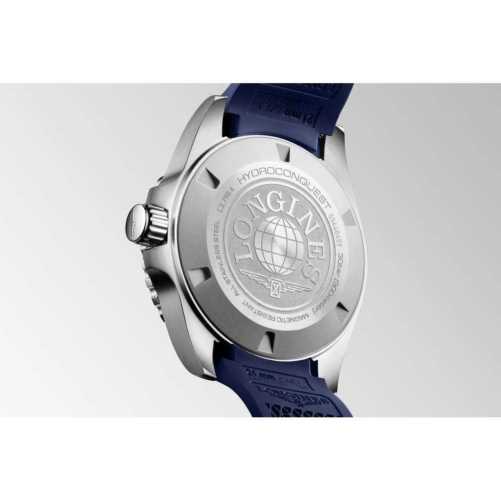 Die HydroConquest Linie, ein echter Klassiker unter den Sportuhren, wurde um Modelle mit GMT-Funktion erweitert. Die HydroConquest GMT vereint technische Höchstleistung mit Eleganz. Sie wurde von der Welt des Wassersports inspiriert und profitiert gleichzeitig von der historischen Erfahrung von LONGINES bei der Entwicklung von Uhren mit mehreren Zeitzonen. Diese GMT Uhr ist bis zu 30 bar (300 m) wasserdicht und wird von einem exklusiven LONGINES Kaliber angetrieben, das mit einer Unruhspiralfeder aus Silizium ausgestattet und resistent gegen Magnetfelder ist.