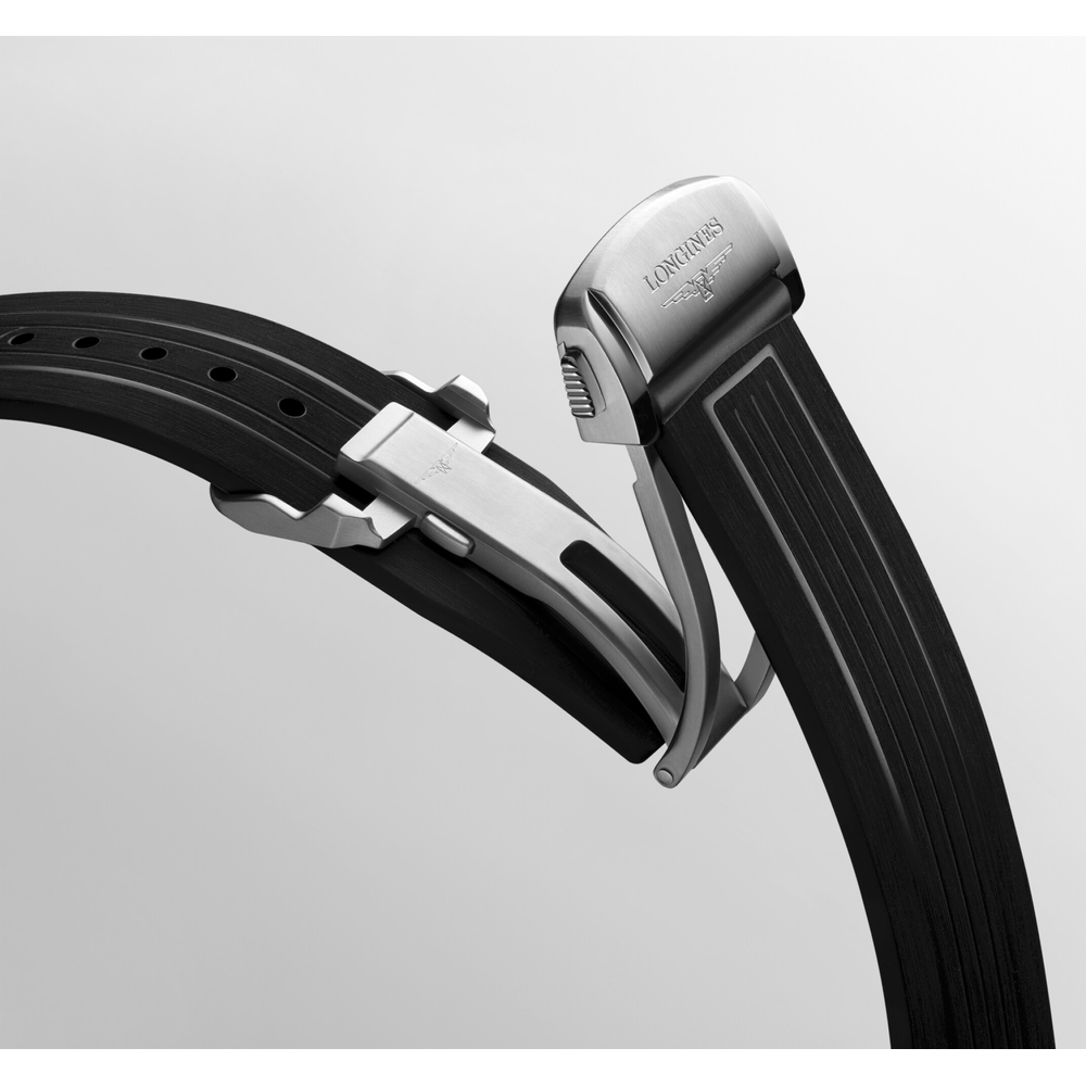 Die HydroConquest Linie, ein echter Klassiker unter den Sportuhren, wurde um Modelle mit GMT-Funktion erweitert. Die HydroConquest GMT vereint technische Höchstleistung mit Eleganz. Sie wurde von der Welt des Wassersports inspiriert und profitiert gleichzeitig von der historischen Erfahrung von LONGINES bei der Entwicklung von Uhren mit mehreren Zeitzonen. Diese GMT Uhr ist bis zu 30 bar (300 m) wasserdicht und wird von einem exklusiven LONGINES Kaliber angetrieben, das mit einer Unruhspiralfeder aus Silizium ausgestattet und resistent gegen Magnetfelder ist.